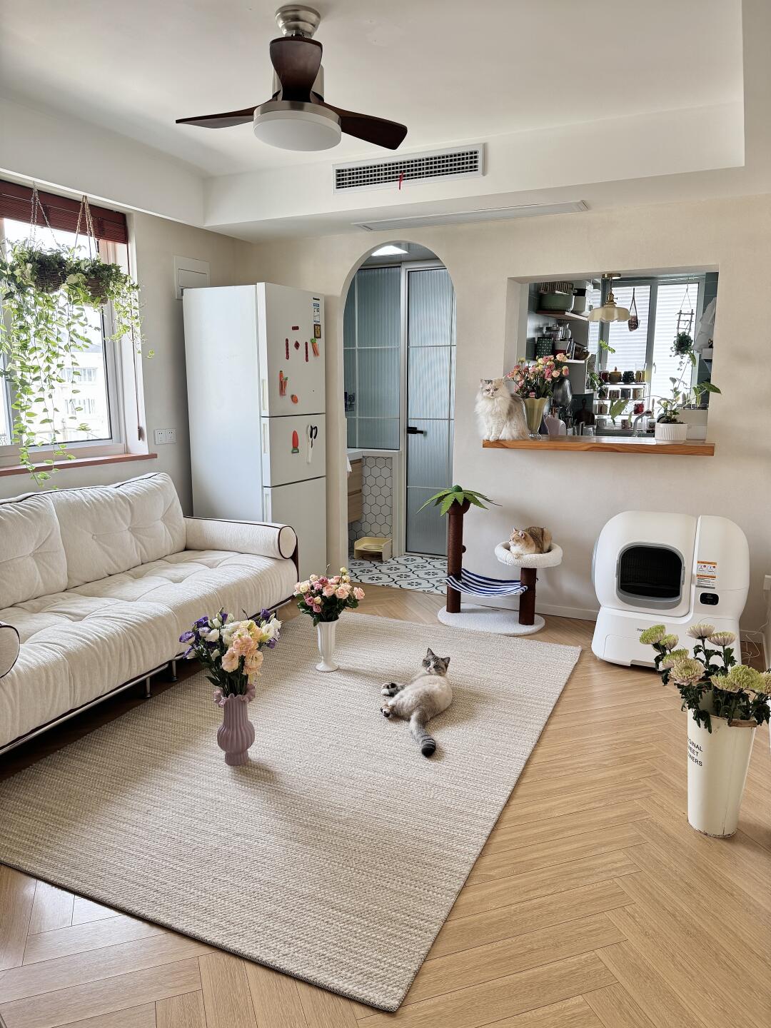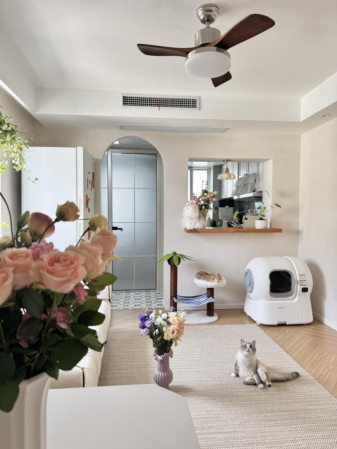 以前的猫砂盆对长毛猫噗噗来说有点小,