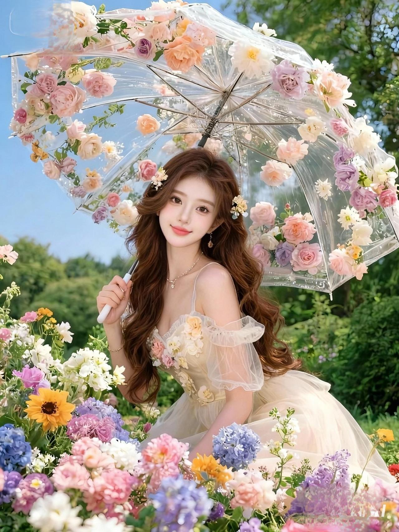 花开花落,伞下美人笑。花美人更美 庭前花落 独对花开花落时