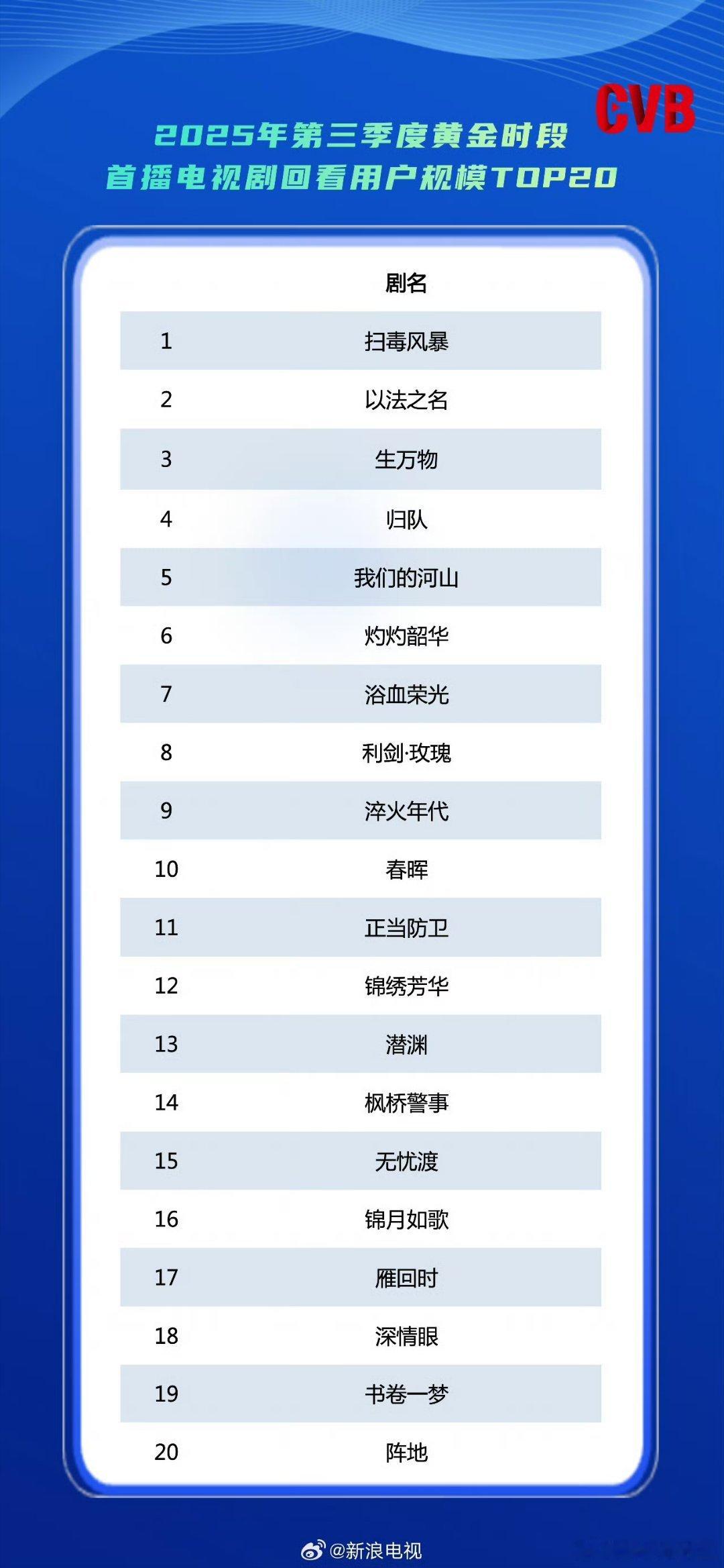 首播回看用户规模top10:《扫毒风暴》《以法之名》《生万物》《归队》《我们的河山》《灼灼韶华》《浴血荣光》《利剑玫瑰》《淬火年代》《春晖》