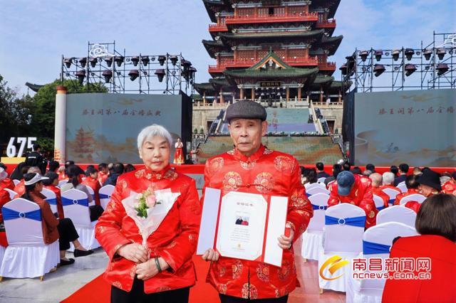 南昌新闻网讯岁岁重阳,今又重阳。10月29日重阳节,滕王阁旅游区内红绸高悬、乐曲悠扬,第八届金婚盛典如期而至。50对金婚夫妇身着喜庆的大红唐装,手挽手缓缓步入典礼现场,在现场游客与市民的祝福与欢呼声中,度过了一个浪漫的重阳佳节。