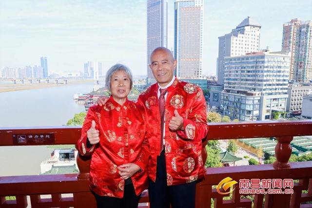 “我们在一起50年了,相互包容,一路走过来感觉很幸福。”在“我们的五十年”仪式中,龚国瑞、胡菊华夫妇的话语朴实却动人。当工作人员为他们递上金婚纪念证书时,两位老人小心翼翼地捧着证书,脸上的笑容格外灿烂。86岁的王文连奶奶拉着90岁老伴龚循淑的手,声音带着些许激动:“我们1965年结婚的,今天来参加这个活动特别高兴,感觉又年轻了一回!”老人们一句句真挚的分享,讲述着相互陪伴、相互扶持的故事,现场弥漫着温馨浪漫的爱情味道。活动最后,全体金婚夫妇与现场观众共同合唱《夕阳红》,“最美不过夕阳红,温馨又从容”的暖心旋律回荡在滕王阁上空,子女们纷纷举起手机,记录下这温馨又珍贵的瞬间。