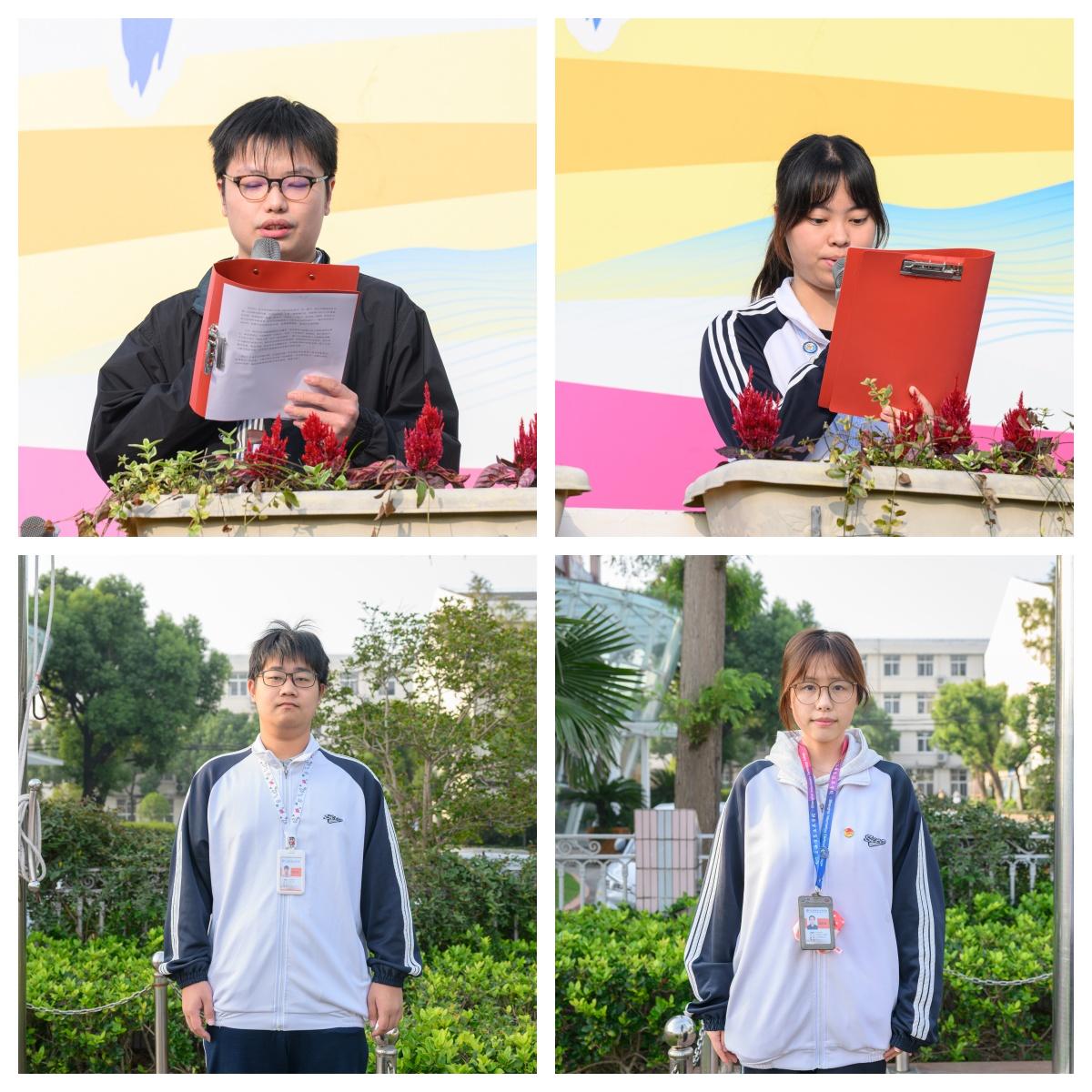 仪式上,戴兆晖介绍了两位光荣护旗手:担任班级化工课代表并且荣获校奖学金的高阳阳,以及在班中担任宝石鉴定课代表一职,同时也是新媒体工作部的副部长谭以琳,他们以一丝不苟的态度和乐于奉献的精神,成为同学们身边的榜样。