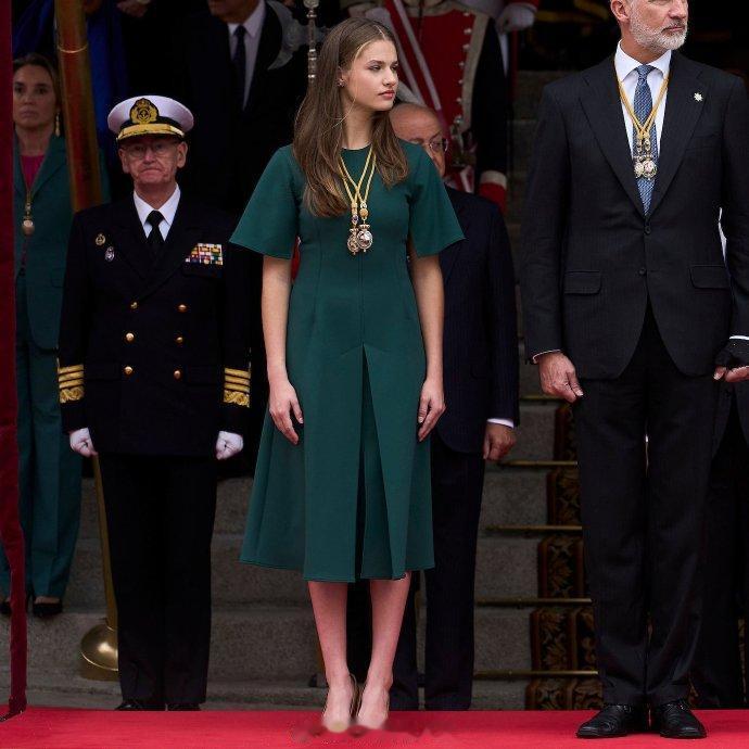 西班牙设计师品牌Adolfo Domínguez有一款比较经典的裙子,以短款喇叭袖、收腰设计和略微蓬松的裙摆为特征。据说经久不衰,每年都会推出类似款,顶多微调细节或者整点新颜色啥的 这款裙子西班牙王后莱蒂齐亚和莱昂诺尔公主都各有一条,其中莱昂诺尔的墨绿色见于前年11月,而莱蒂齐亚的红色则前阵子才见到 裙子平铺版本看着平平无奇还有些水桶,但从母女俩的上身效果来看其实都不错,大场合能压得住,还显得比较大气