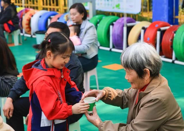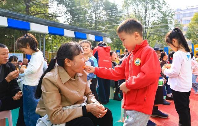 特别温馨的是,孩子们将饱含敬意的菊花茶双手奉至老人面前,小心翼翼地为他们剥开甘甜的橘子,并用稚嫩的小手为辛劳一生的长辈们捶背揉肩。这些看似简单的举动,不仅让老人们脸上绽放出幸福的笑容,眼角泛起感动的泪光,他们轻抚孙儿的头,所有的爱与欣慰都融在这无声的动作之中。这一刻,尊老、敬老、爱老的美德,如同清润的茶香与甘甜的橘汁,深深浸润了每一个幼小的心灵。