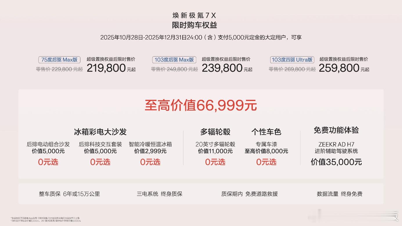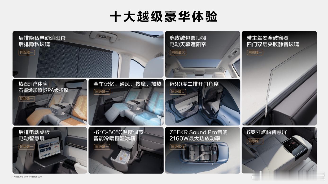 10月28日刚上,三款配置,超级置换后21.98万起。极氪这次够实在,全系900V电机电控、激光雷达+Thor-U芯片,连四门双层夹胶玻璃、麂皮顶棚都标配,137项配置直接拉满,可以说起步即豪华,真的实在!