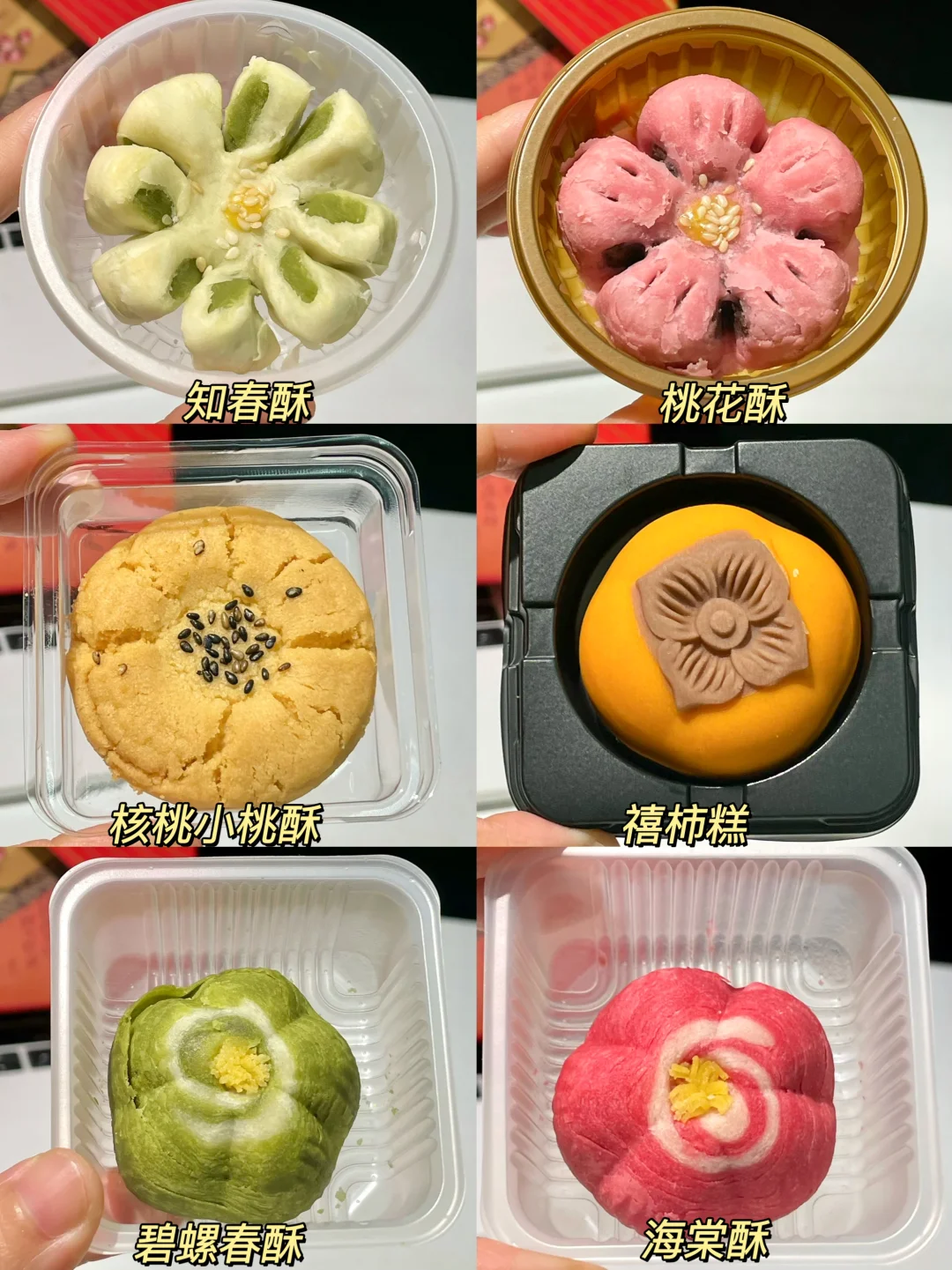 而且每个糕点的名字都好好听,知春酥、桃花酥、禧柿糕、碧螺春酥、海棠酥 、凤梨酥、杨梅酥、核桃小桃酥、木糖醇小桃酥、龙井茶饼…