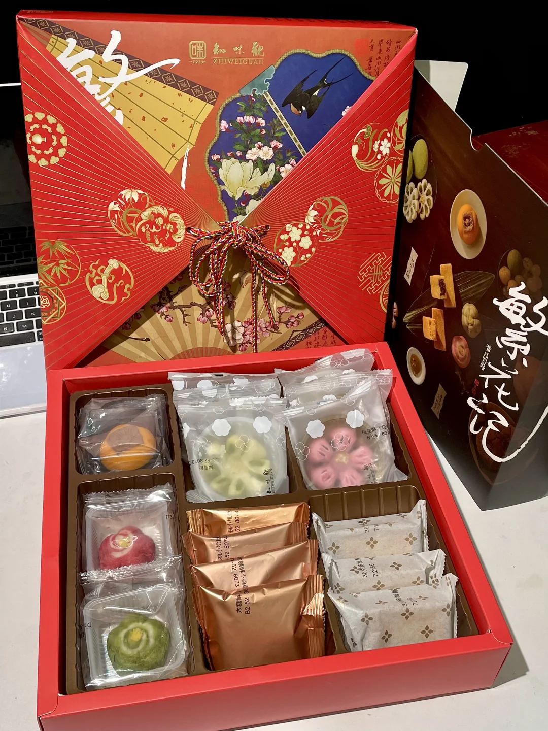 一盒里面🥮有好多不同口味不用形状的糕点,每个打开都是满满惊喜