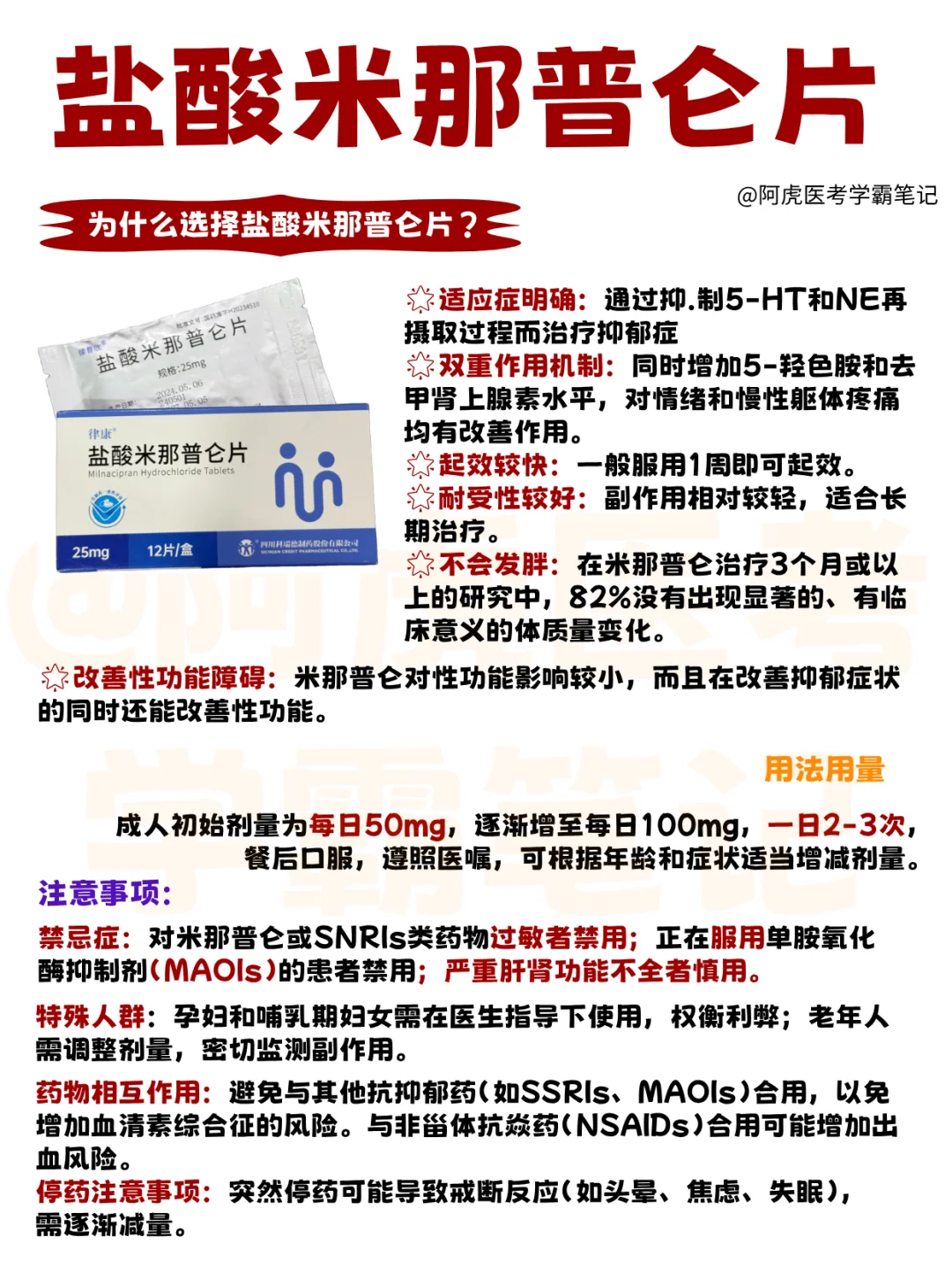 阿虎医考 米那普仑12片 盐酸米那普仑片 抑郁症 医学生笔记 医学生实习