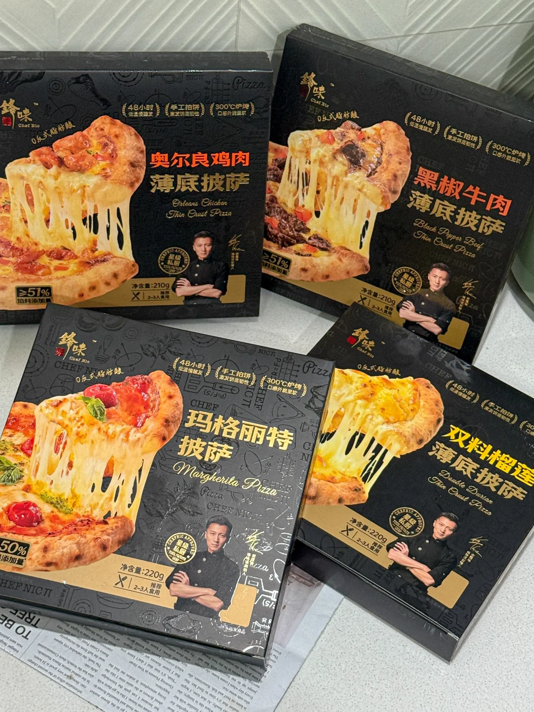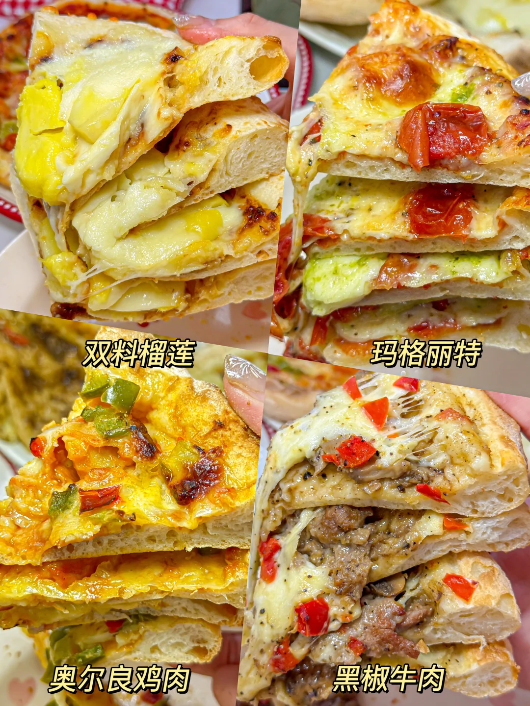 ✔️口味有:双料榴莲、黑椒牛肉、奥尔良鸡肉、玛格丽特