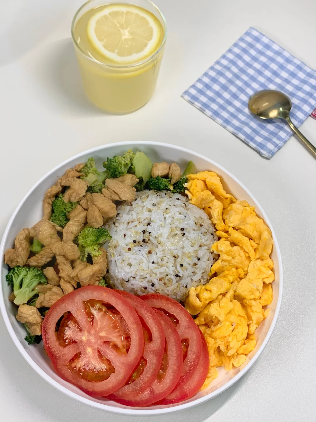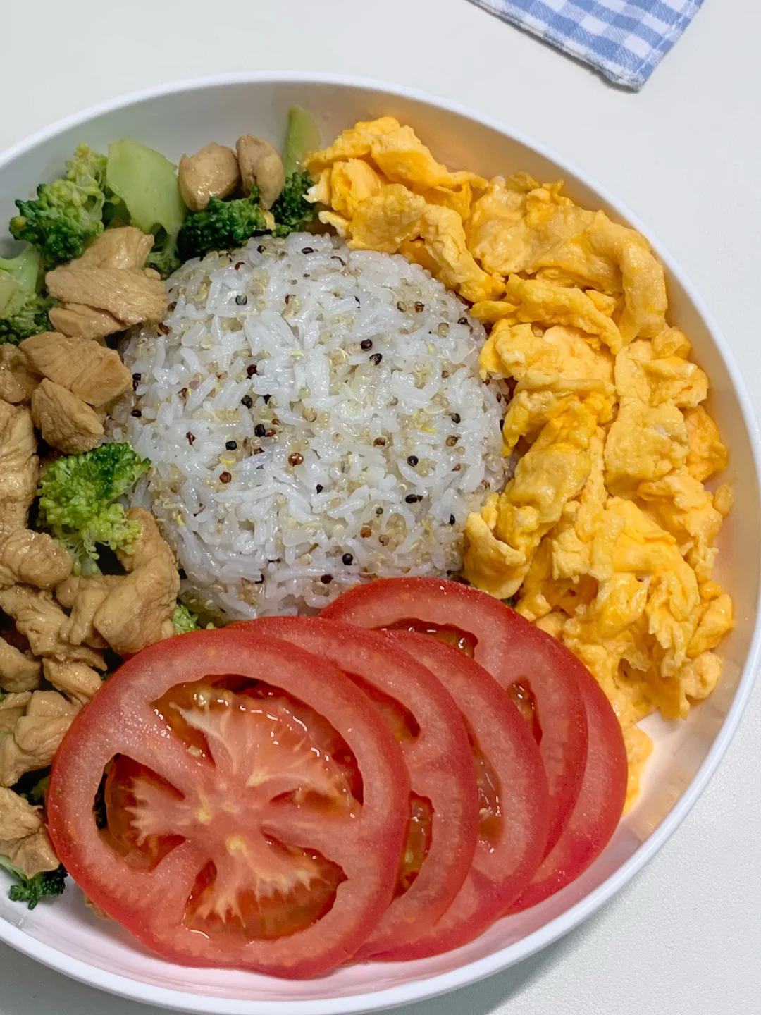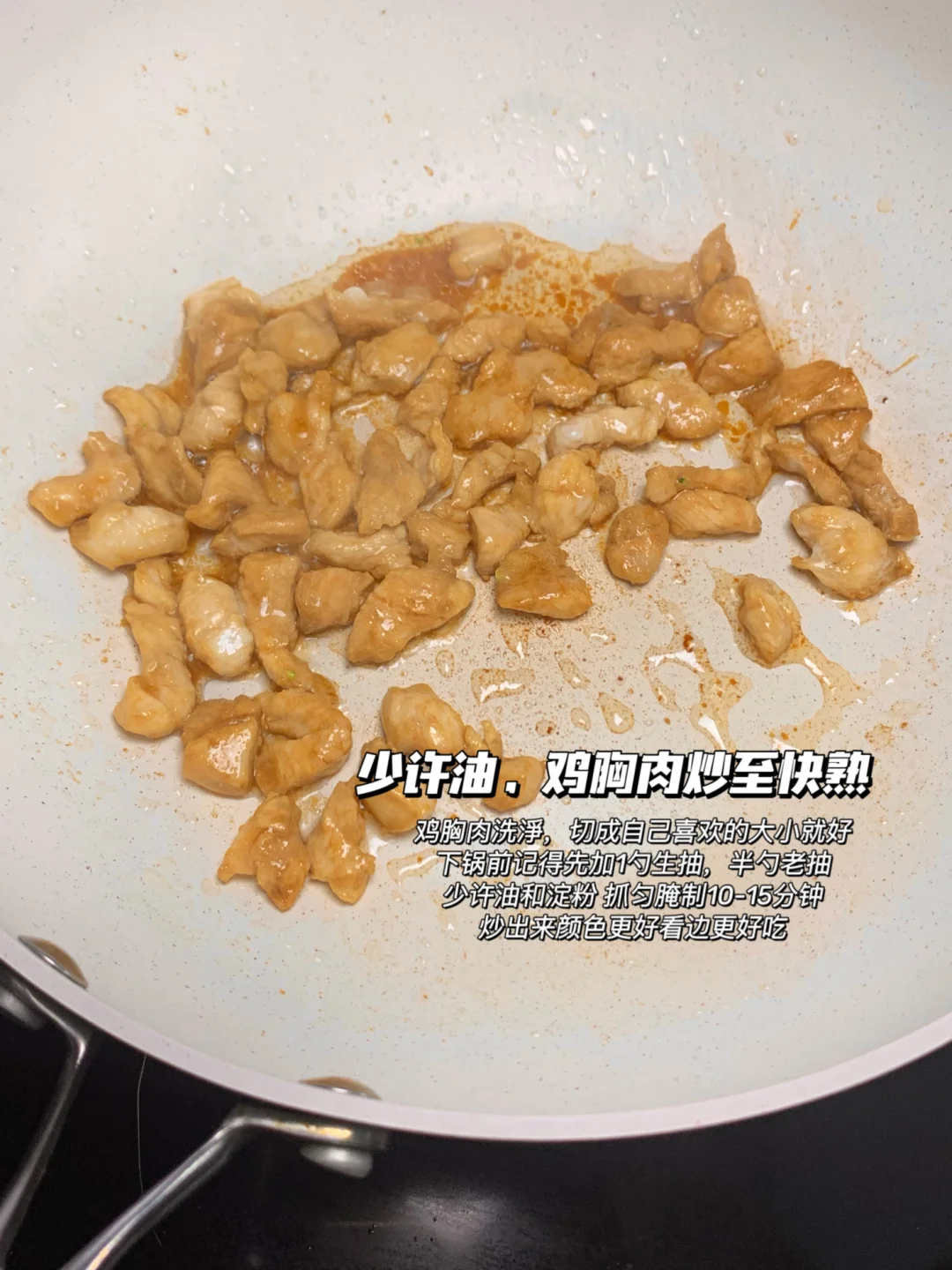 今天吃的是西兰花炒鸡胸肉➕鸡蛋➕番茄片,做起来很简单! 🥕食材准备:鸡胸肉/牛肉、西兰花、番茄、鸡蛋 1️⃣鸡胸肉洗净切成肉粒,加1勺生抽,半勺老抽,少许油和淀粉,拌匀腌制10分钟~ 2️⃣西兰花洗净,下锅焯水1-2分钟捞出备用 3️⃣少油,鸡胸肉炒至快熟,放入西兰花继续翻炒,起锅前放少许盐鸡精炒匀即可 4️⃣少许油炒个嫩鸡蛋炒成鸡蛋碎。