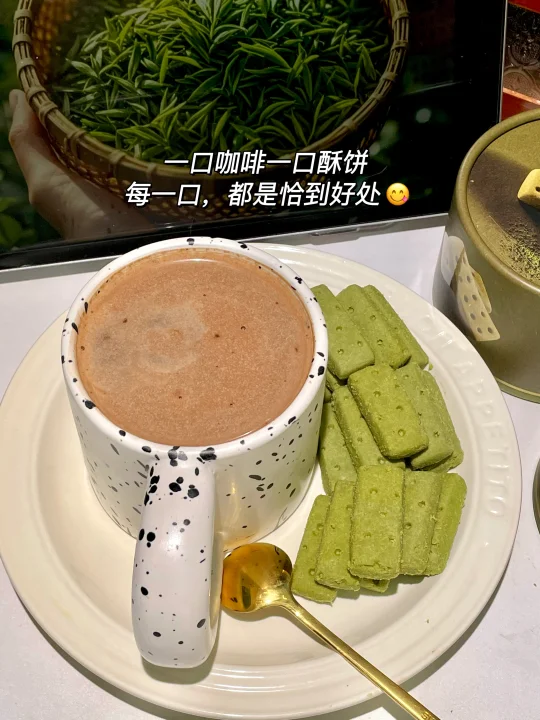 黄油的咸甜中和抹茶的微苦,一点都不甜腻!口感好丰富👅再配一杯清茶,又奶又香,秋日下午茶拿捏~~