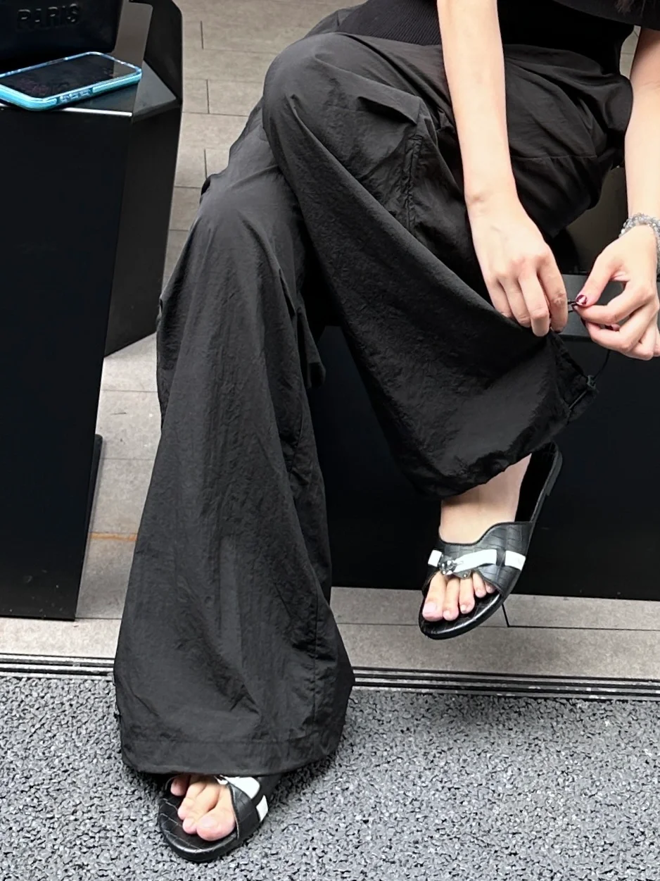 显瘦天花板! 以前觉得阔腿裤显胖? 这条伞裤上窄下宽的剪治好了我的焦虑! 梨形身材的福音 空气感Max ,舒适度逆天 甜酷辣妹装 ,夏日必备