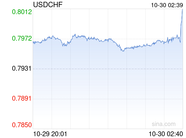 10月30日 美元兑瑞士法郎突破0.8011 折算100瑞士法郎汇率兑887.3902人民币