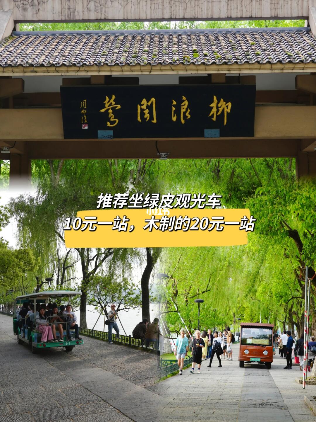 📍游西湖坐绿皮观光车,比木制观光车便宜一半