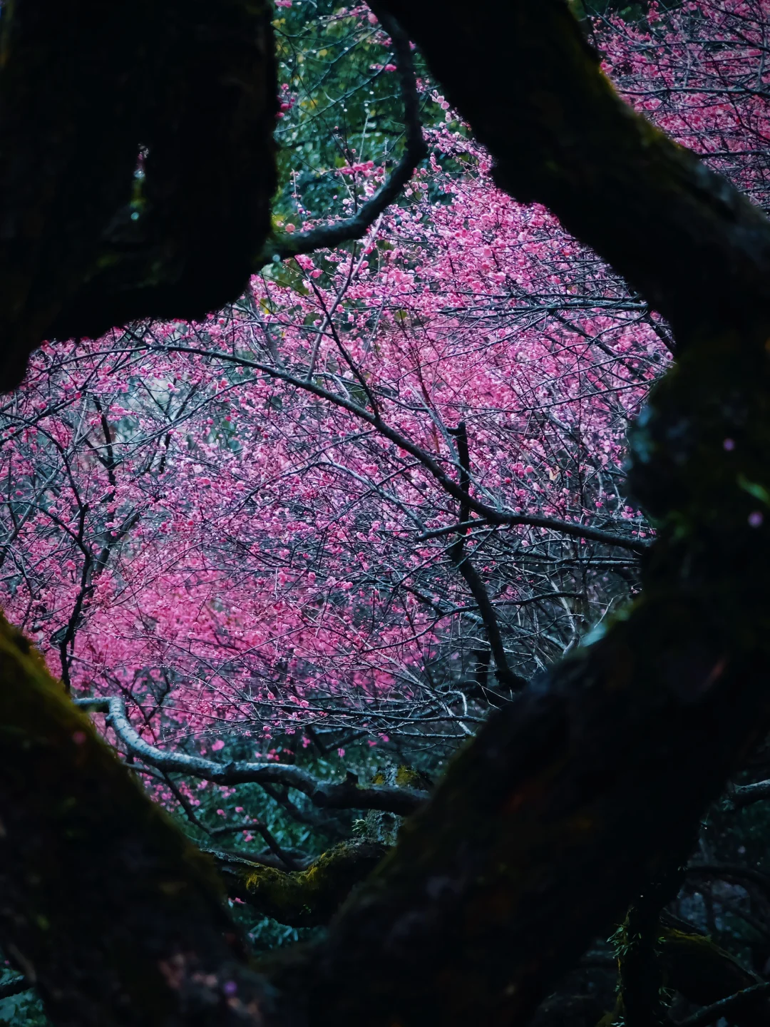 在杭州植物园 灵峰探梅的千株古梅 以疏影横斜的姿态 将千年宋韵凝固成一场视觉的盛宴 晨雾未散时踏入青芝坞 青石板路上零落的花瓣 是林逋“梅妻鹤子”的残稿