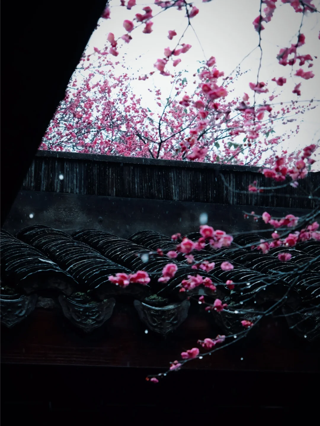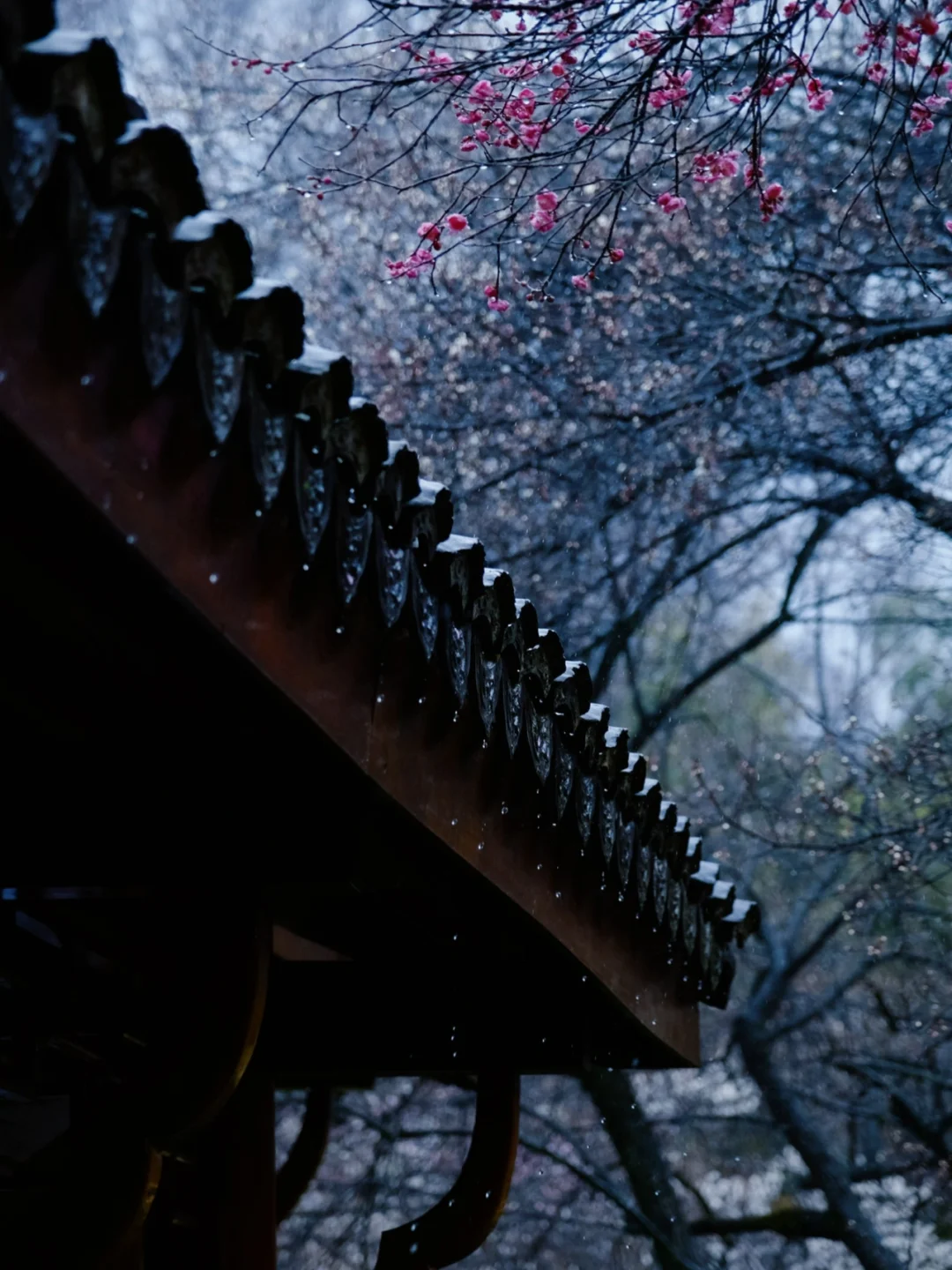 雨丝斜织时 梅园的花瓣坠入积 涟漪荡开《诗经》里的“摽有梅”意象