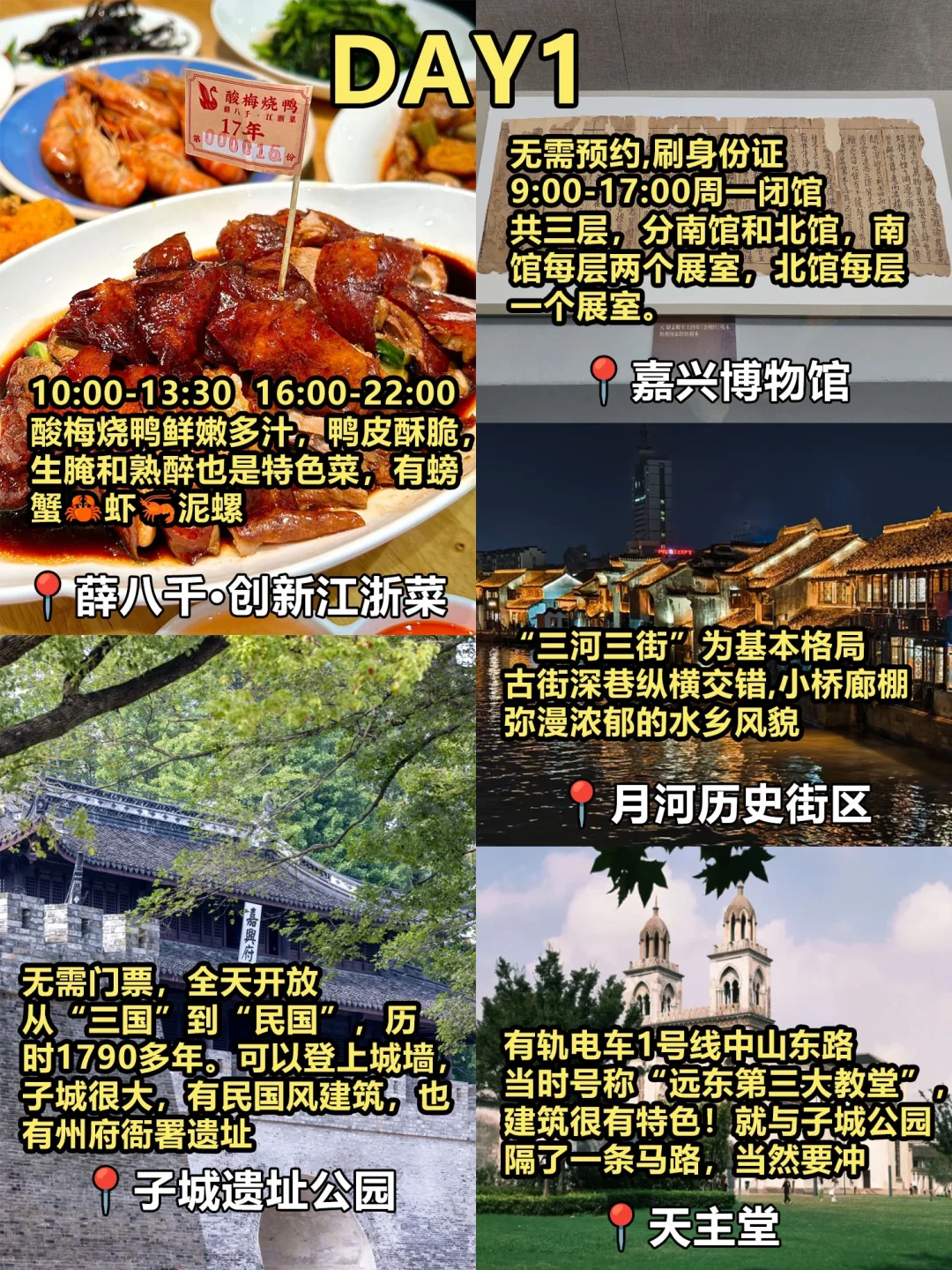 DAY1:嘉兴博物馆-薛八千-月河历史街区-子城遗址公园-天主堂