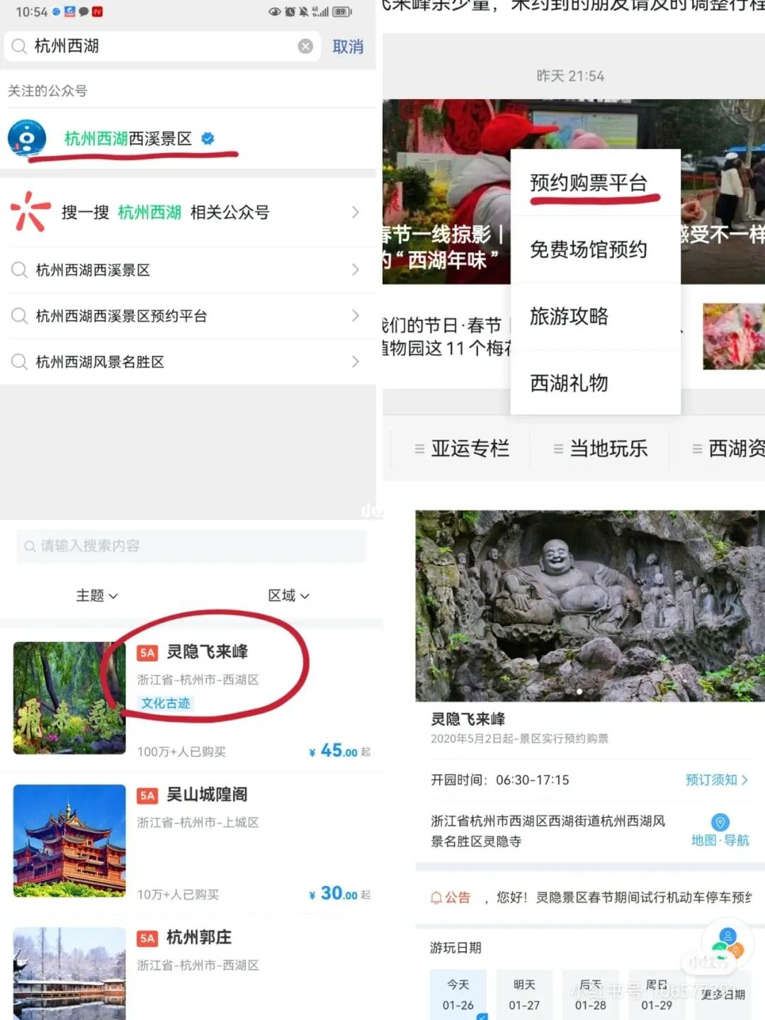 预约方式:gzh杭州西湖西溪景区-灵隐飞来峰