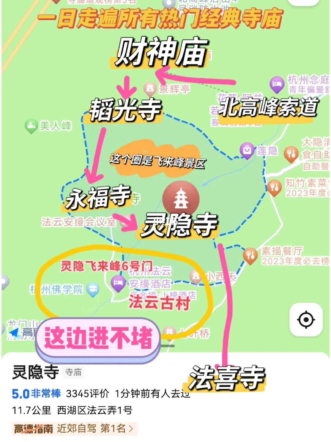 📍若一定要去,从灵隐飞来峰景区6号门进,或从法云古村那个口进,一路畅通