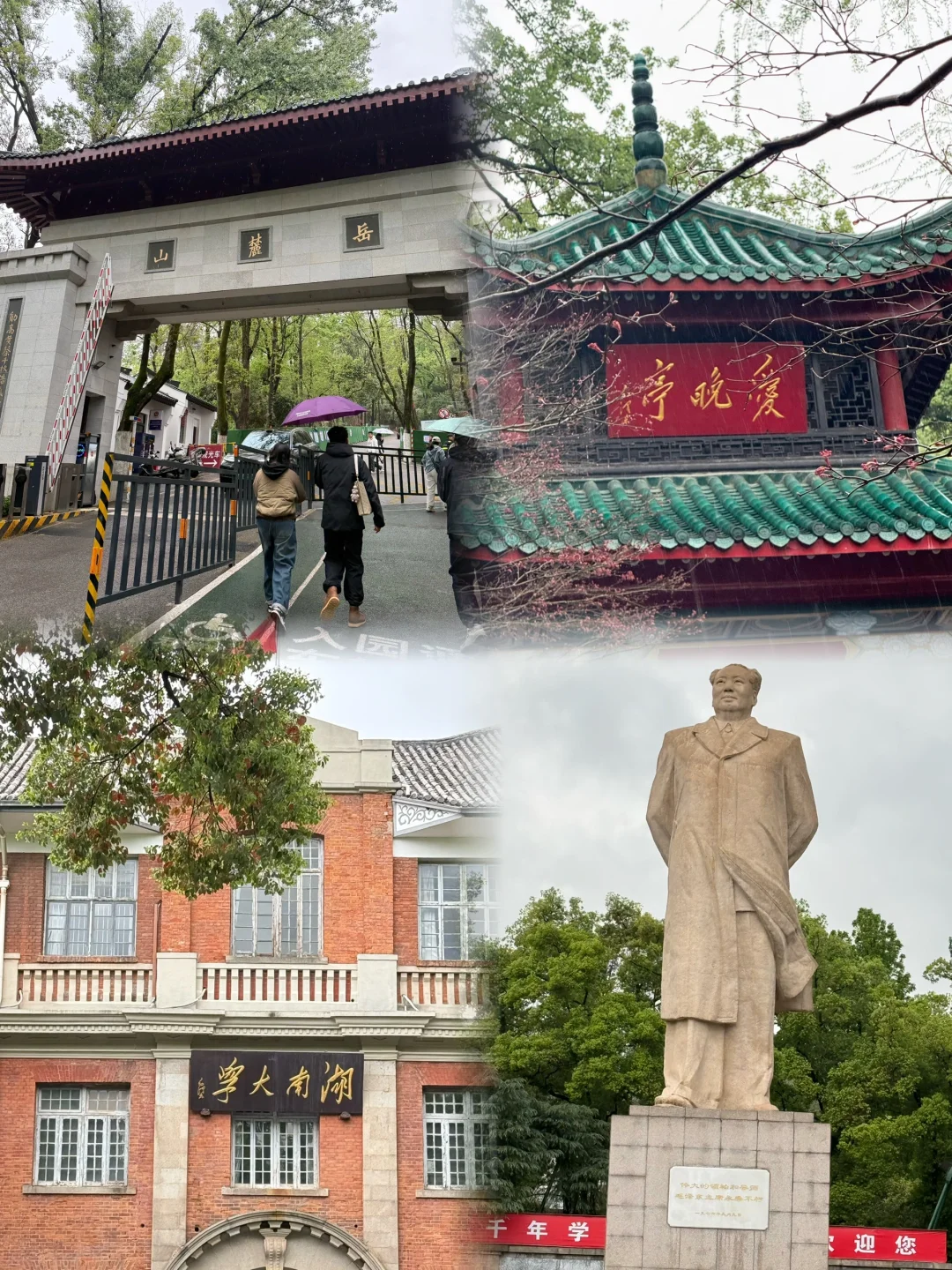 2.不想爬山只想打卡爱晚亭、湖南大学、岳麓书院的一定要导航岳麓山南门 从地铁出来走几步就到毛主义雕像那块 旁边就可跟湖南大学合影 再往前就是爱晚亭和岳麓书院