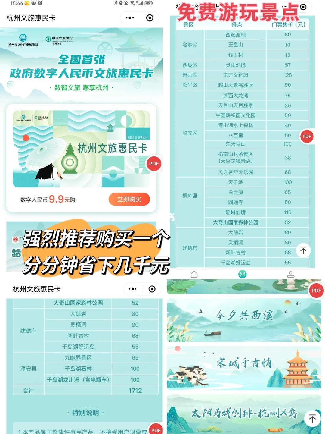杭州文旅惠民卡,9.9购卡就可以享受杭州26个景区免费无限畅游