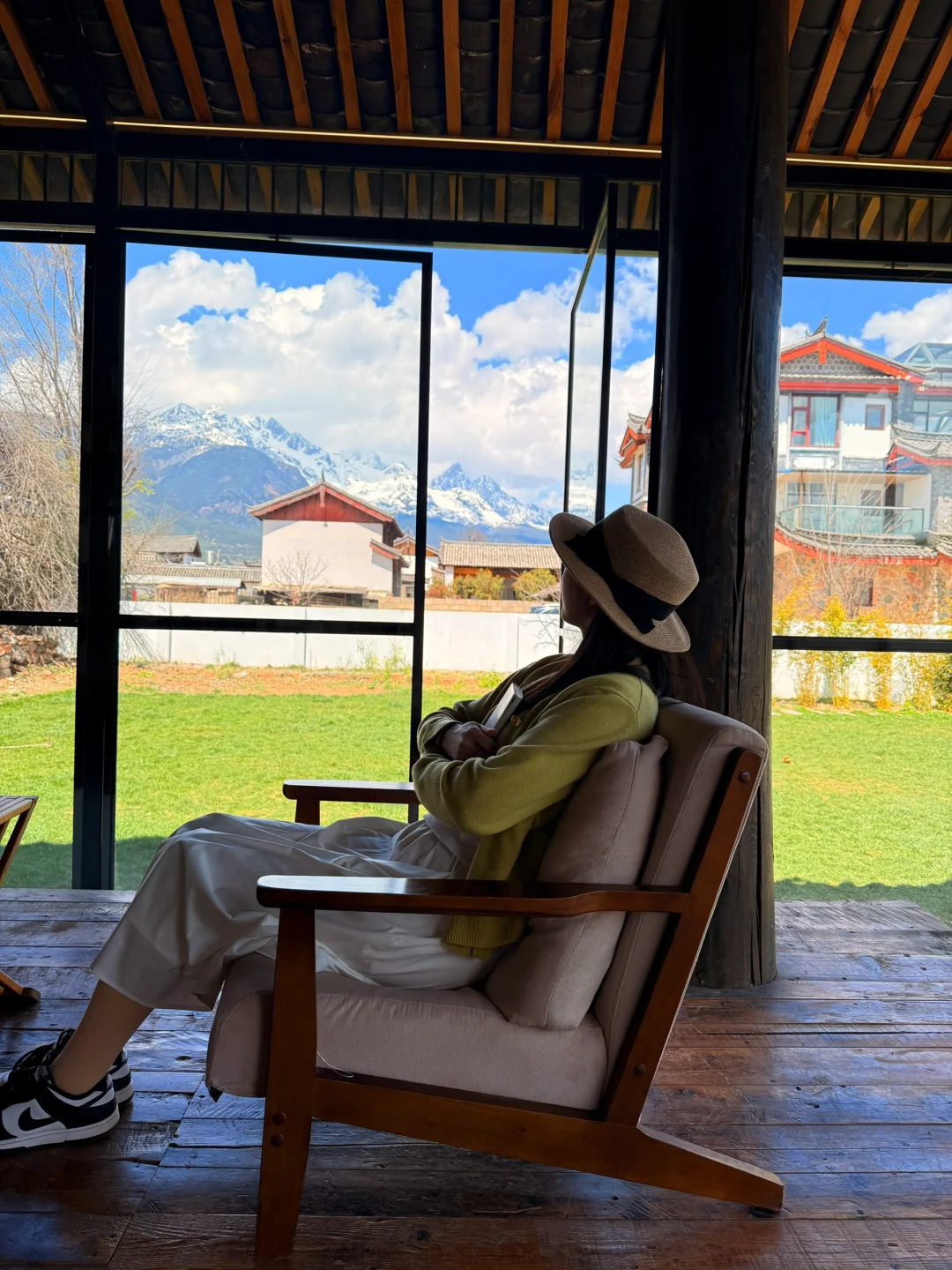 7️⃣白沙古镇我只去了瑞幸顶楼(免费)能拍到雪山 还有云中书局(一客一消)人少 地方大 还有一只特别欢脱的狗狗