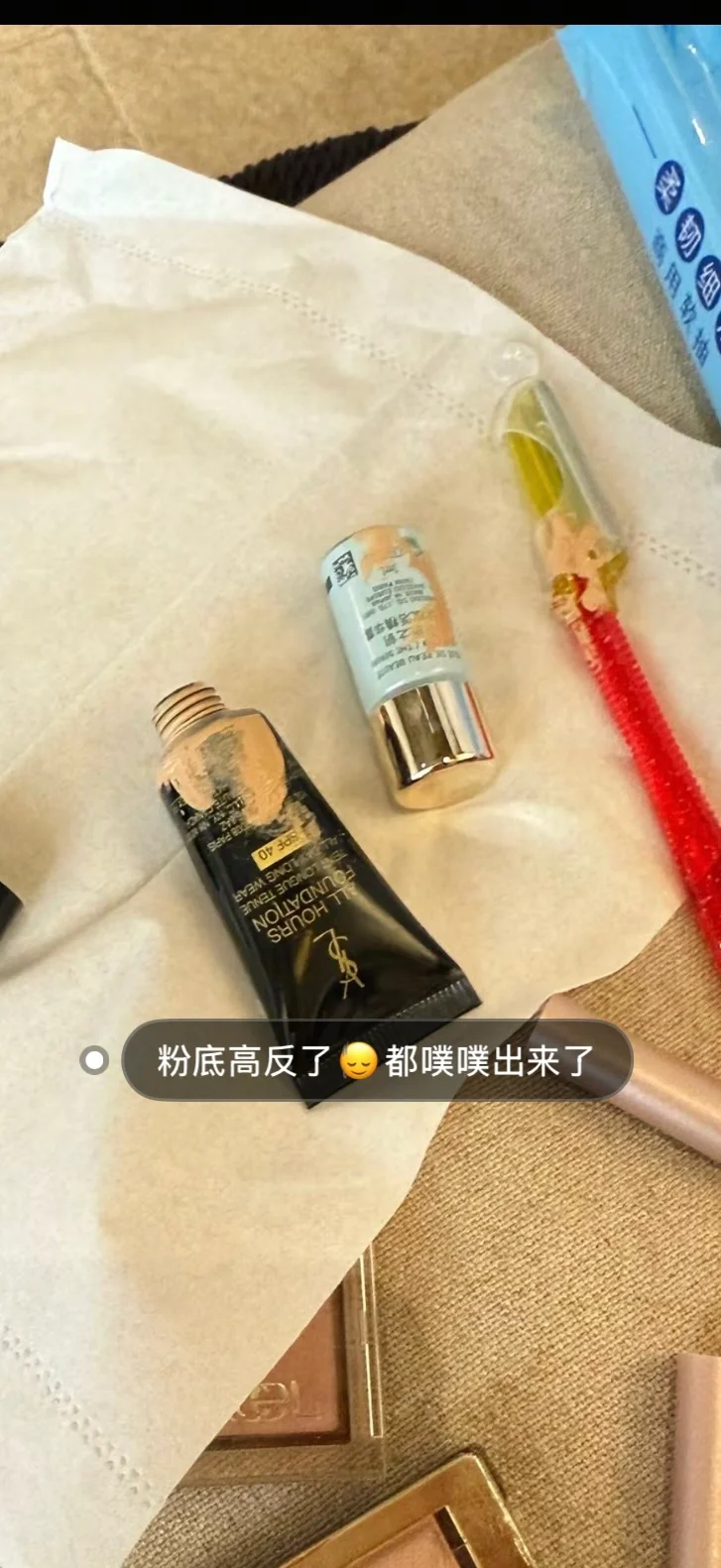 5️⃣去丽江 管状化妆品一定要包保鲜膜 我的粉底忘包了 噗噗一兜子