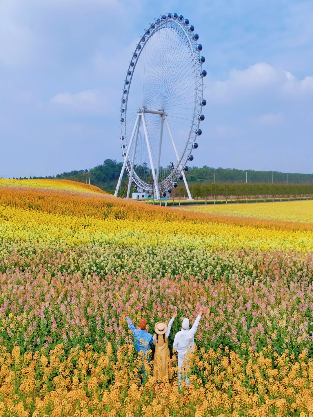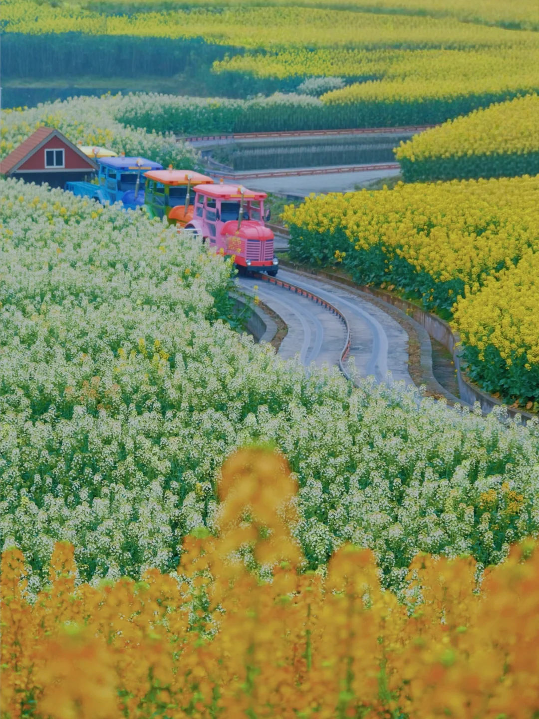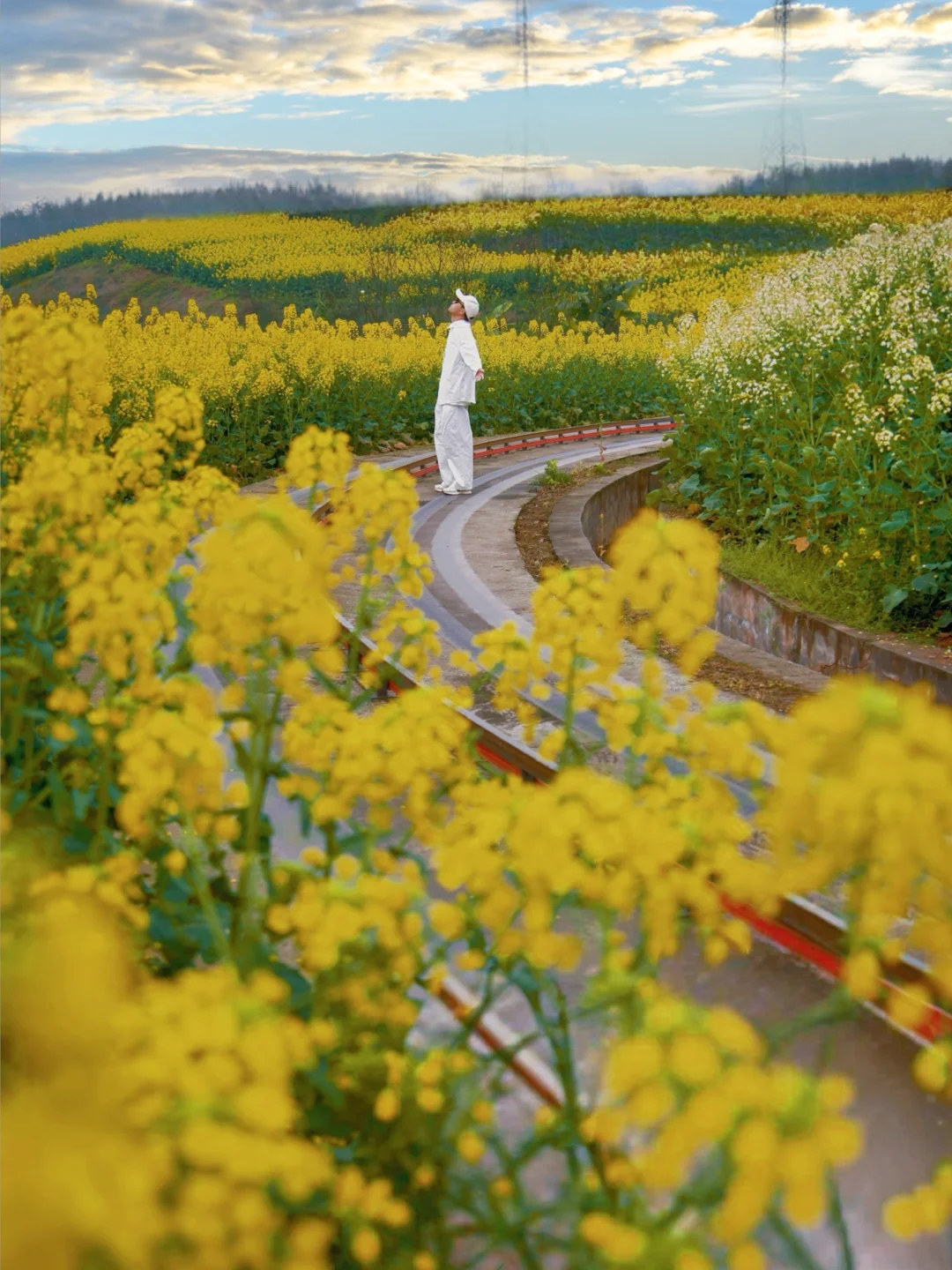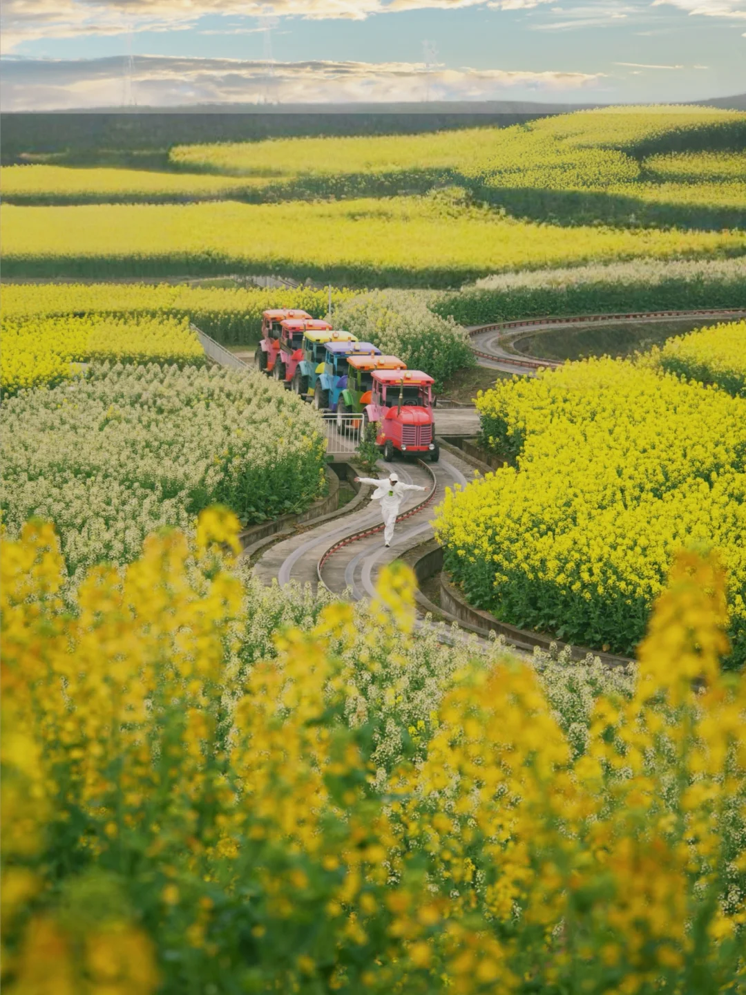 📍春天的宜宾 像一幅被大自然打翻的调色盘 而欢乐田园 则是其中最浪漫的一抹色彩 这里是童话与现实的交织 是春天与心灵的共鸣 把春天装进书本 从这里开始 闯入春天的童话乐园 蜿蜒的油菜花田在春风中摇曳 像是大地的金色波浪 温柔地拥抱着你 坐上小火车 穿过花海 仿佛进入宫崎骏的动画世界 每一帧都是治愈的画面 摩天轮悬着二十四种蓝天的模样