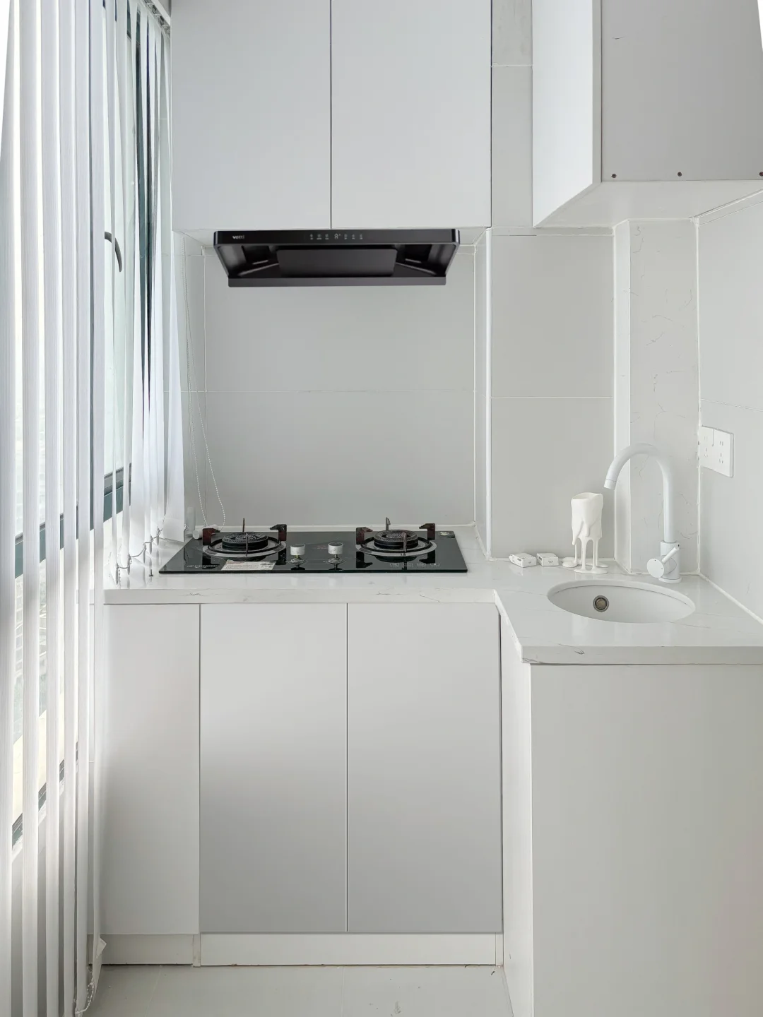 做菜不碰头,外观设计又漂亮,关键是做了齐平橱柜的设计🉐