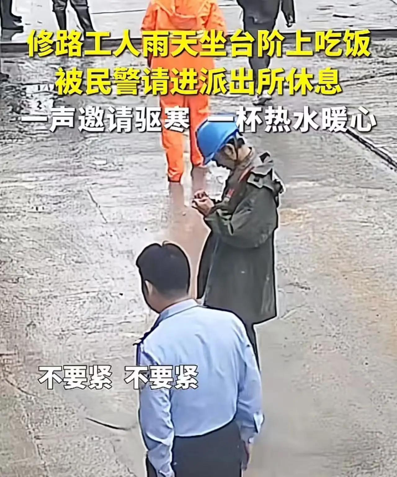 “这个民警,火到人民日报!”湖北黄石icon,修路工人雨天坐在派出所门口的台阶上避雨吃饭,民警看到后朝着他们走来。工人们一愣,以为民警要赶他们走!可没想到,民警对他们说:“大家进去里面坐吧,外面风大下雨,太冷了……” 这个民警,火到人民日报!这不仅仅是一句简单的善意提醒,更是一种温暖人心的行动。在这个快节奏、竞争激烈的社会,或许我们都习惯了冷漠与疏离,觉得“帮忙”只是责任,而非一种发自内心的关怀。但就在那一瞬间,这位民警用行动告诉我们,善意从未远离。 你是否也曾在生活的某个角落感受到孤单与寒冷?可能是繁忙工作中的一句鼓励,也可能是陌生人递来的一杯热水。正是这些微小的善举,点亮了我们心中的希望。民警的这个举动,让我们看到了警察职业的另一面——不仅是执法者,更是社区的守护者、温暖的传递者。 更令人感动的是,工人们的反应。或许他们一开始还带着一丝警惕,担心被驱赶,但看到民警的笑容和真诚的邀请,心中的防备逐渐融化。那一刻,人与人之间的隔阂被打破,陌生变成了理解与信任。这不仅仅是一次简单的避雨,更是一场温暖的心灵交流。 这件事在网络上迅速发酵,成为众多网友热议的话题。有评论说:“在这个物欲横流的时代,还有这么善良的举动实属不易,其乐无穷!民警传递的温暖 人民英雄民警 民警暖心一幕 民警为你点赞 民警吃面 黄石工地 鄂州修路人