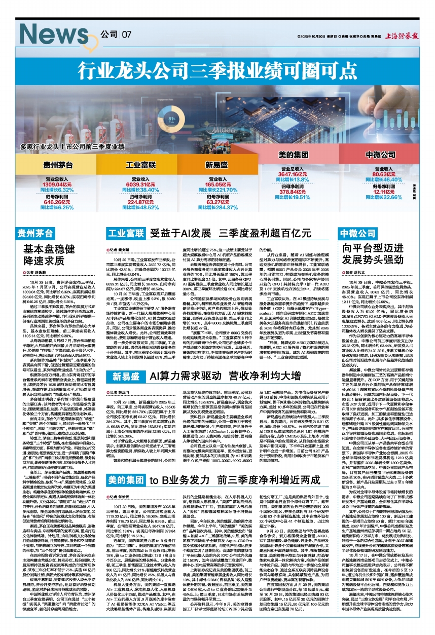 中国酒业独立评论人肖竹青认为,贵州茅台三季度业绩表明,公司正在通过“三个转型”实现从“渠道推动”向“消费者拉动”的深度变革,强化其穿越周期的能力。