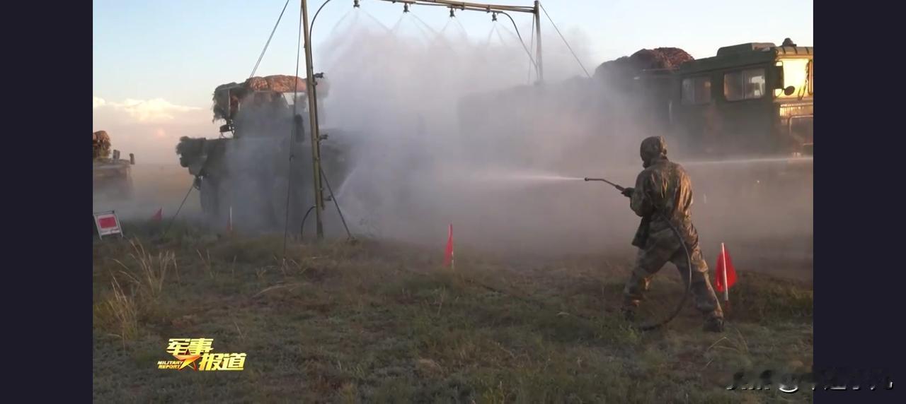 大场面!还真是第一次见到,防生化洗消作业,装甲防空集群经过生化污染区域,遭遇生化污染,保障部队快速开展洗消作业,确保装备和人员恢复正常状态! 以前还真没有见过这场面,尤其是陆上装备集群进行洗消作业的画面,这是第一次在报道中见到,是不是此时装甲车辆里的士兵们,也要穿戴防护服? 大家觉得呢?评论区说说!战场防护装备