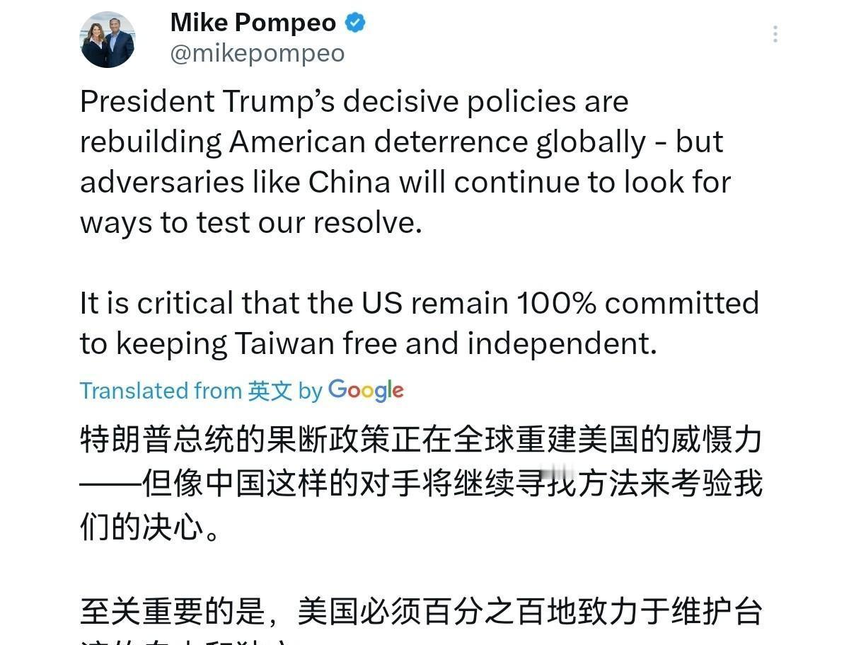 晓书斋评眼看中美将有可能在韩国举行高峰会 中美韩峰会前夕,蓬佩奥突然跳出来刷存在感!10月29日,这位早就不在位的前美国国务卿大放厥词,说什么“台湾是独立的”,还嚷嚷着要美国明确支持台湾。其实就是想趁机讨好民进党当局,看能不能捞点“赞助费”。 谁都看得出来,他现在无权无势,说话根本没分量。真正值得注意的是,特朗普最近会见日本前总务大臣高市早苗时,压根没提台湾——说明美国现政府在这事上还是谨慎的。 台湾从来就是中国的一部分,不是什么“独立国家”。我们迟早要解决台湾问题,这是历史的必然。现在台海两边军力悬殊,美国想插手也越来越力不从心。蓬佩奥这种话除了制造噪音,改变不了任何现实。他就是个过气政客,刷存在感骗经费罢了。 素材来自网络,侵权联系删除