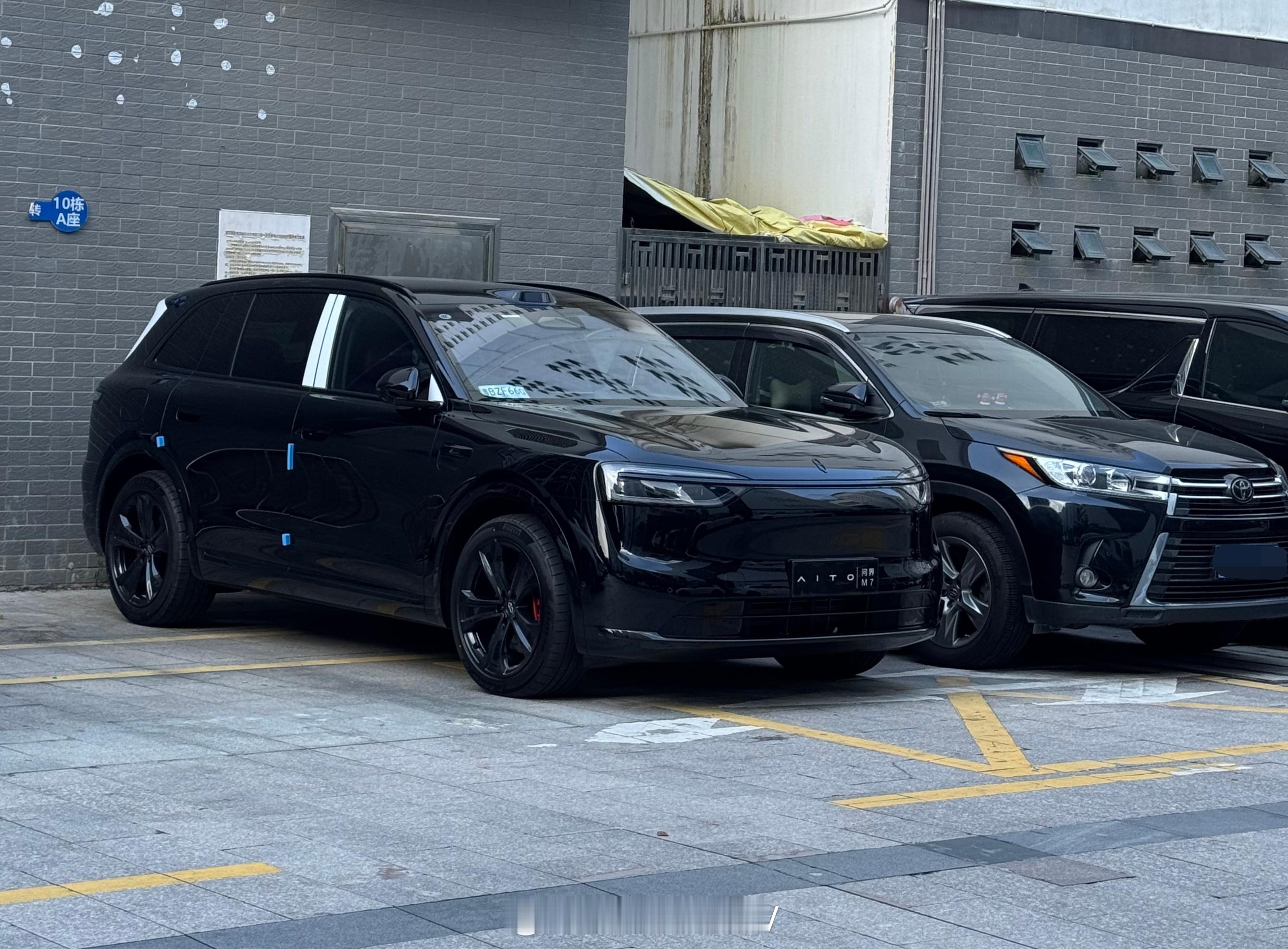 全新问界M7肉眼可见的变多了,这黑色的真帅啊,对比旁边的汉兰达,这气势高得可不止