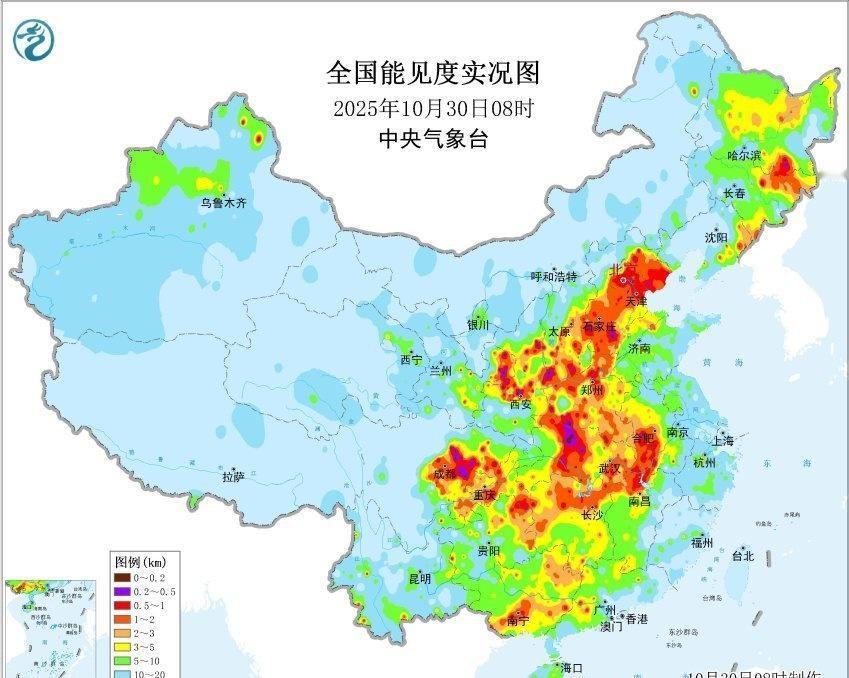 【雾和霾】今晨从空气质量看,在黑龙江双鸭山、河北廊坊、保定、石家庄、邢台、邯郸、河南鹤壁出现了重度污染。而且因为湿度大,今晨北京、天津、河北、山西、陕西、河南、湖北、重庆、四川、安徽等地出现大雾。四川盆地空气质量基本都是优良,这个雾就是降雨后,湿度过大,干净的雾。 而京津冀一带,是水汽在细颗粒物表面附着凝结,因此是雾与霾的混合体。从实况监测和预报看,未来有弱冷空气不断南下,华北的空气质量会自北向南逐渐好转,但因为冷空气很弱,转好的过程向南推进的速度也会比较慢。而且污染也不会被彻底消除,未来会向河南一带转移。 今晨8时能见度不足100米的站点有:陕西麟游、咸阳、延川、山西永和、汾西、河南南阳、淅川、邓州,安徽黄山(光明顶)、黑龙江牡丹江、海林、宁安。