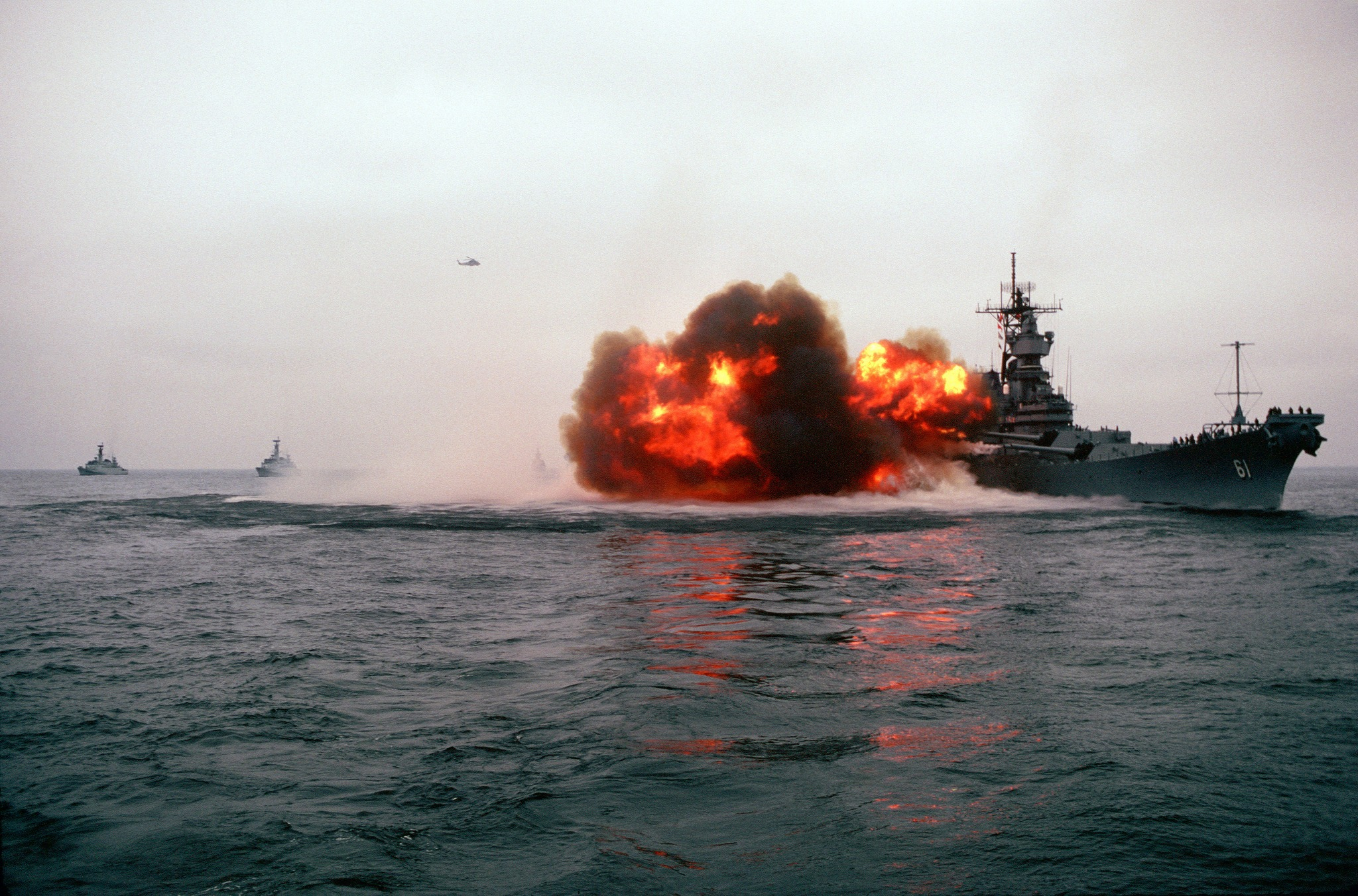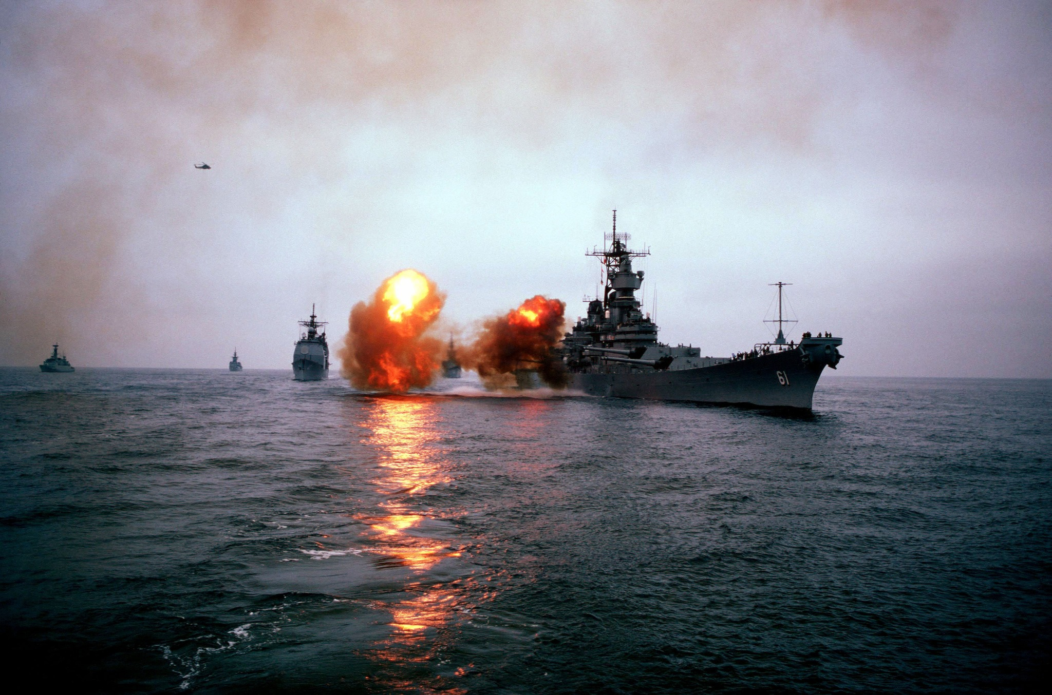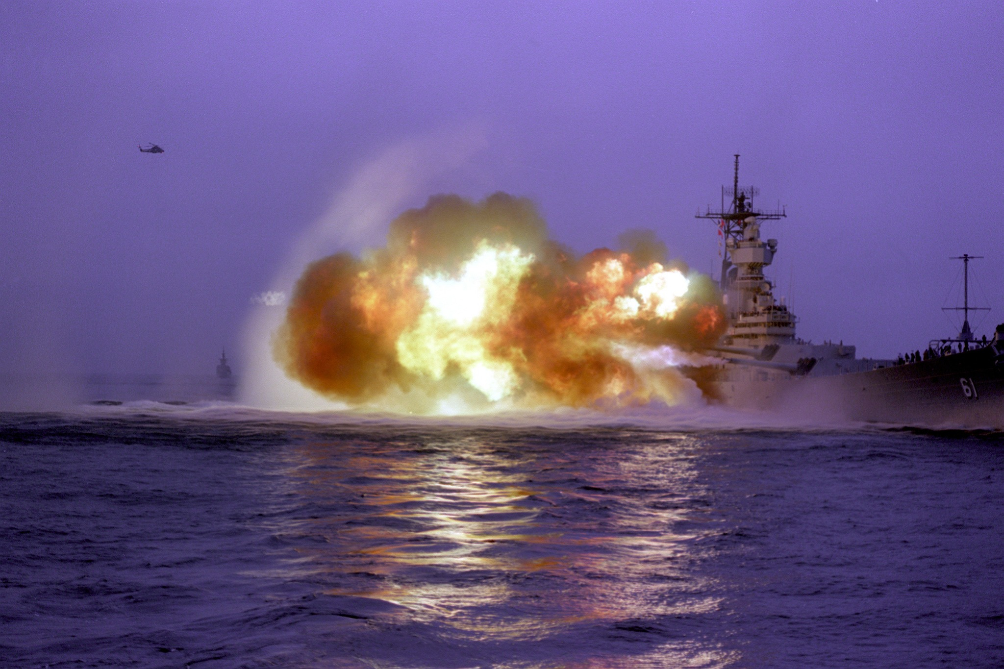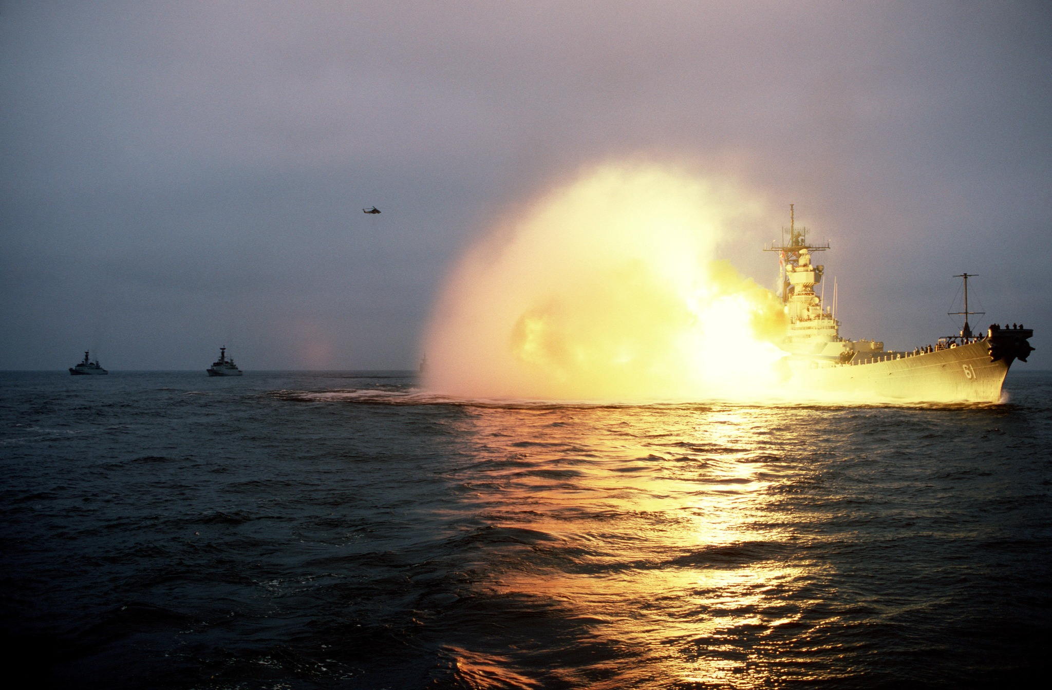 BALTOPS 85军演、衣阿华号战列舰开火瞬间