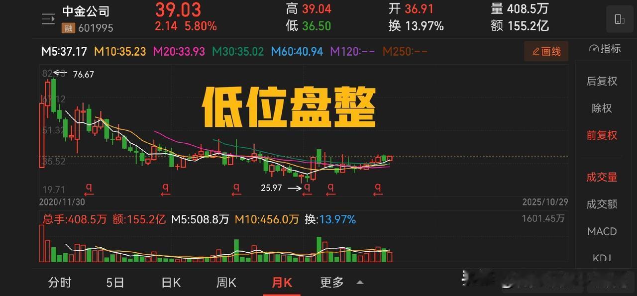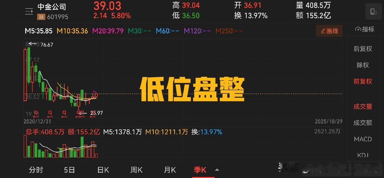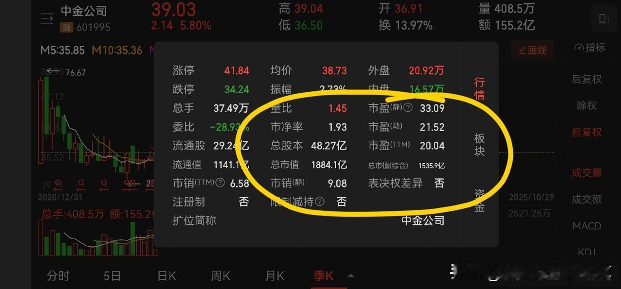 评中金公司三季报:只是国家队而已。三季度净利润22.36 亿,前三季度 65.67 亿,市值1880 亿,2 倍市净率,估值合理。 上数据:第三季度实现营业收入约79.33亿元,同比增长74.78%;实现归属于母公司股东的净利润约22.36亿元,同比增长254.93%。前三季度,中金公司实现营业收入约207.61亿元,同比增长54.36%;实现归属于母公司股东的净利润约65.67亿元,同比增长129.75%。 从数据对比来看,2024 年的业绩数据对市值的支撑是不够的,所以说中金上市之后一路下跌主要还是在消除之前的泡沫。 从估值角度看,2 倍市净率,20 倍左右的动态市盈率,只能说相对合理,但是是否低估,有点勉强。 与之形成对比的是,中信证券的市净率是 1.6,动态市盈率只有 15 倍。 关于业绩的变动,中金公司表示,报告期内手续费、佣金净收入增长,持有及处置以公允价值计量的金融工具产生的收益净额增加,导致营业收入增加,营业收入增长导致营业利润率上升。--这个说法就可以理解为啥三季度业绩和上半年业绩相比为什么这么平滑,三季度这么好的市场氛围只是取得了了前两个季度平均的业绩,说明公司的进取能力不足。 所以我的判断是:还得是国家队,也只是国家队。如此而已。