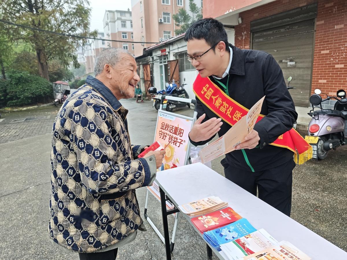 岁岁重阳,今又重阳。为切实提升老年群体金融风险防范意识,守护老年人“钱袋子”,10月29日,中国人寿财险信阳中心支公司积极响应总公司及河南省分公司工作部署,在市区精心组织开展“重阳敬老金融护航”专项活动,以实际行动为老年朋友送上一份特殊的“重阳关怀”。