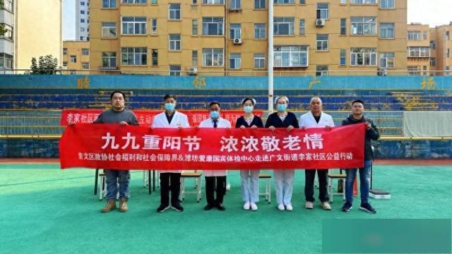在重阳节来临之际,为弘扬中华民族尊老、敬老、爱老的传统美德,传递健康关怀,10月27日,奎文区政协社会福利和社会保障界组联合潍坊爱康国宾体检中心走进奎文区广文街道李家社区,开展了一场"情暖重阳·健康同行"主题健康公益活动,为社区居民特别是老年群体送上了一份温暖的"健康礼"。