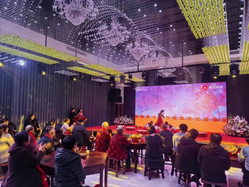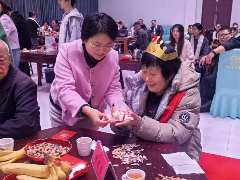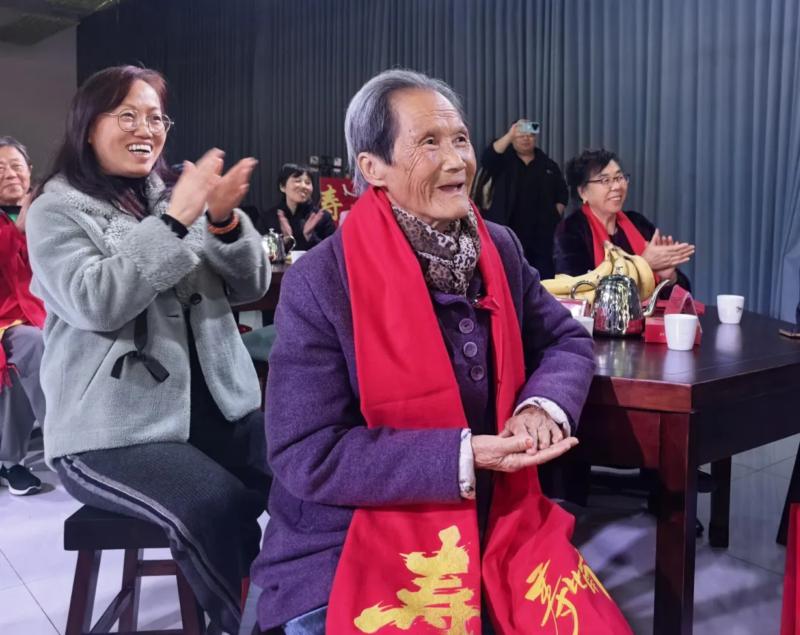 活动现场洋溢着喜庆祥和的氛围。老人们步入会场时,志愿者引导他们在“寿”字签到板上签名,并为他们佩戴寿星胸花和红围巾,一声声“祝您健康长寿”的问候,传递着浓浓的温情。不少老人在子女或老伴的陪伴下,在装饰精美的打卡区合影留念,一张张笑脸被镜头定格。随着清脆的鼓点响起,舞蹈《弟子规》拉开活动序幕,孩子们活泼可爱的表演赢得阵阵掌声;歌曲《最美不过夕阳红》唱出了岁月沉淀的从容;评剧《花为媒》选段唤起了老人们的青春记忆;紧接着,朗诵、舞蹈《微山湖》等九个贴近老人兴趣的节目轮番上演,现场掌声与喝彩声此起彼伏,老人们沉浸在节日的喜悦中。