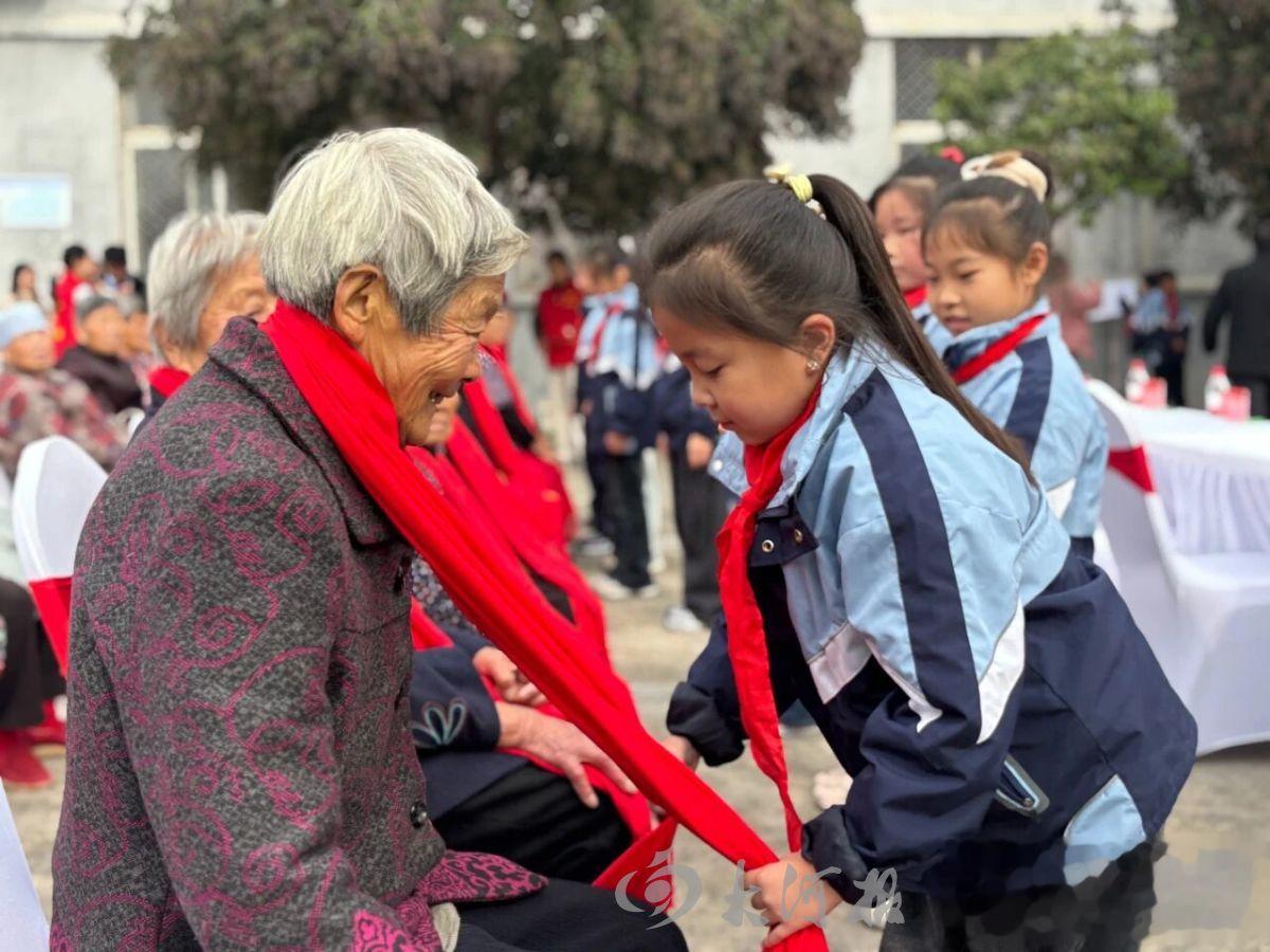 十名少先队员手捧鲜艳的红围巾,细心为老人们佩戴。红领巾与红围巾相映生辉,勾勒出一幅“小敬老、老爱小”的动人画面。今年刚满80岁的王奶奶眼含热泪:“孩子们给我们戴围巾,让我看到了好传统在下一代身上传承。”