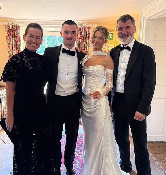 直播吧10月30日讯据《太阳报》报道,曼联传奇罗伊-基恩的儿子艾丹上周末举行了婚礼。基恩在社媒分享了一张家庭合影,照片中他身穿燕尾服与妻子特蕾莎和新婚夫妇站在一起。