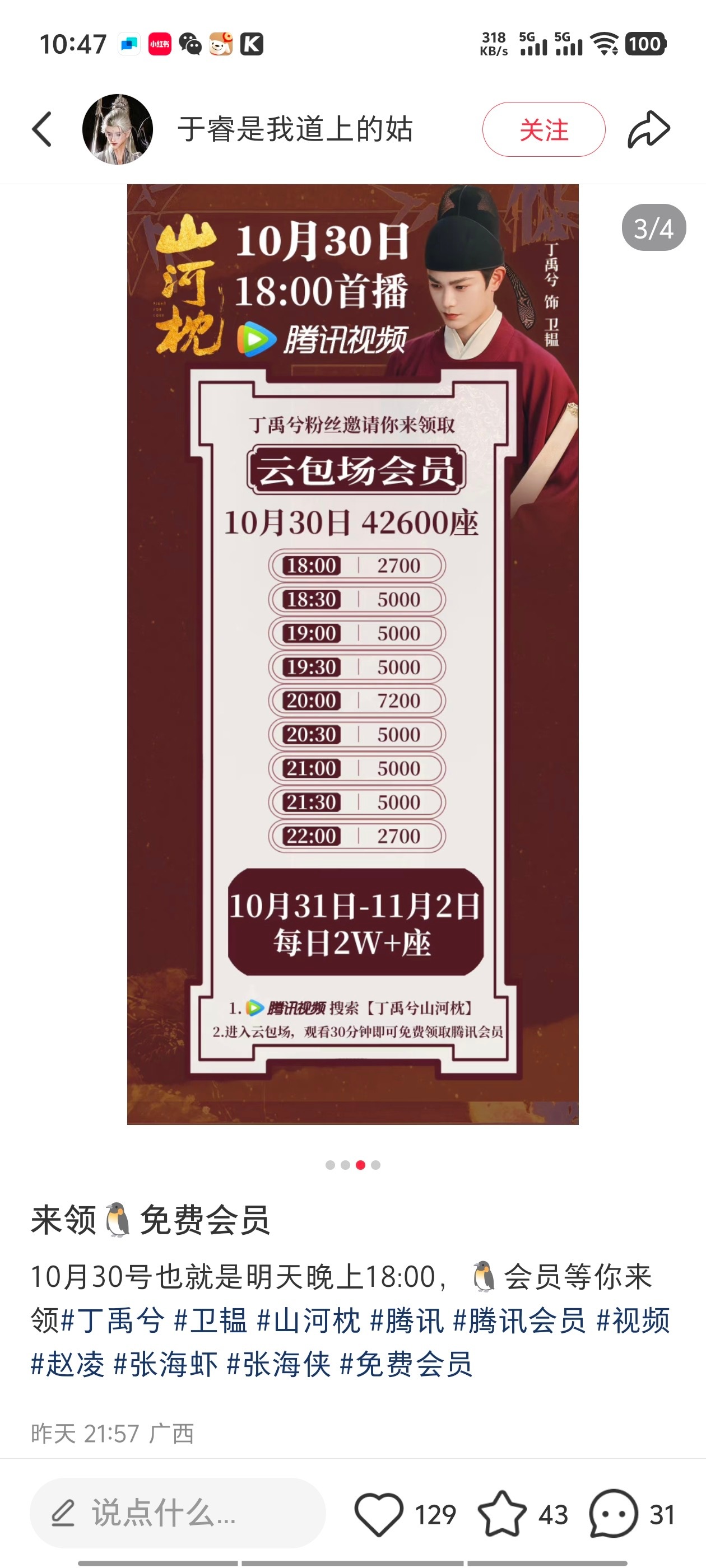 丁禹兮山河枕开播啦!![666]今晚6点记得来抢免费会员啊!