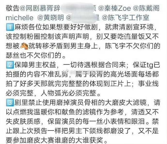 陈飞宇粉丝向《慕胥辞》剧组维权,因为片花里的大磨皮大滤镜把陈飞宇的下颌线都给磨没了!