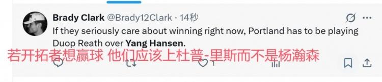 杨瀚森因为挡拆太菜,被美国球迷骂“滚出NBA”,开拓者跟着躺枪 杨瀚森上半场就拿2分2犯规,挡拆惹是生非肯定是主要原因,大个出去挡拆,是他和CBA的落后打法,而且腿伸得很开,这不是希望对方碰瓷吗? 美国球迷骂他,这就跟中国球迷不一样,当然国内现在批评的也多,其实就打球习惯讲,现在的杨瀚森,甚至不如刚去火箭的周琦,确实能力达不到人家联盟的基本要求,哪怕是最低的,还是因为开拓者为了流量,至于带女朋友吃火锅被质疑,其实还是在于杨瀚森太自大,CBA的坏习惯,就不能放弃吗?