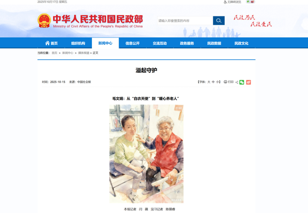 近日,在备受关注的“溢起守护”——养老康护人才薪火计划公益行动中,经中国社会报社、民政部社会福利中心与北京泰康溢彩公益基金会联合组织的全国范围的严格评审,河南康养集团旗下许昌颐城养老服务有限公司再传喜讯。护理主任毛文娟,凭借精湛的专业技能、卓越的服务水平和崇高的职业精神,成功入选全国100名优秀养老服务从业者名单,其事迹分别在中国社会报、民政部官方网站宣发。这份荣誉不仅是对毛文娟同志个人能力的极高肯定,也是康养集团注重人才培养、强化专业队伍建设的生动体现。