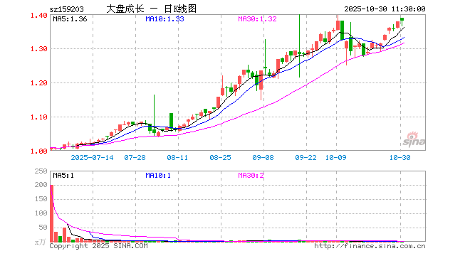 大盘成长ETF(159203)业绩比较基准为国证大盘成长指数收益率,管理人为博时基金管理有限公司,基金经理为刘玉强,成立(2025-06-18)以来回报为38.02%,近一个月回报为2.49%。