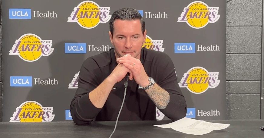 赛后,湖人主教练JJ-雷迪克接受采访表示:“我现在为这支球队感到十分骄傲,我们开始团结在一起了。”