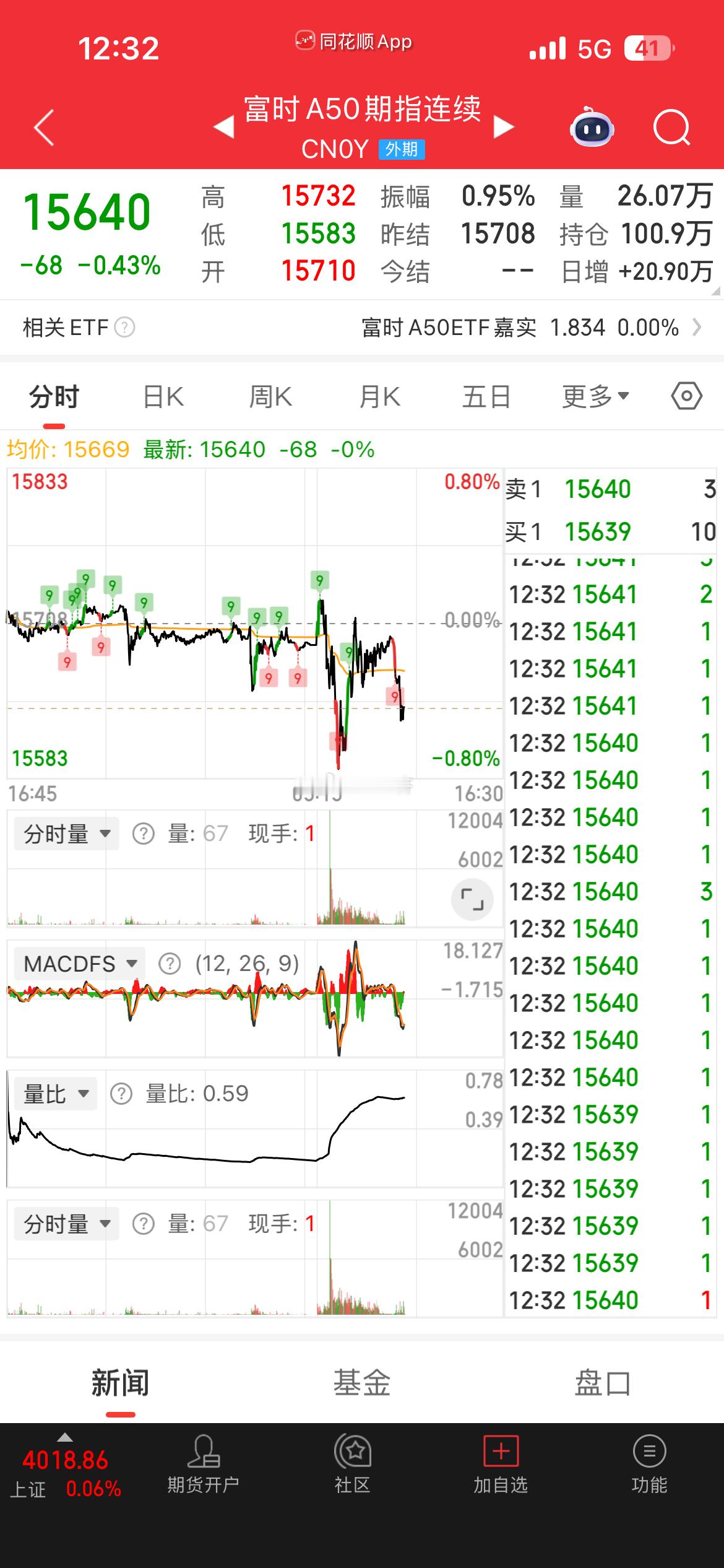 富时中国A50期货CFD CHA50CFD[股票] 小幅 下跌 美股下跌 看来是