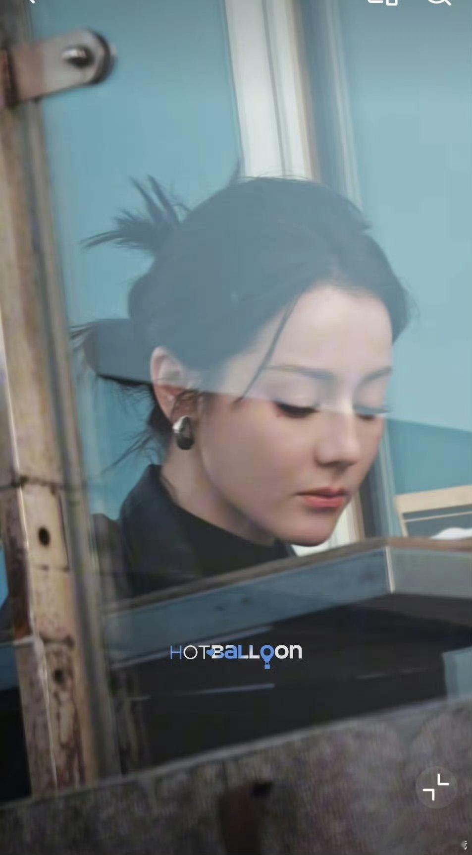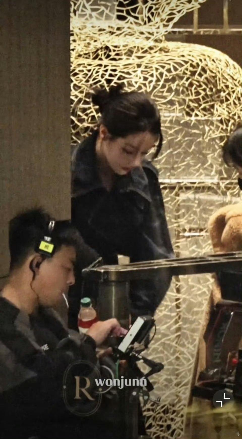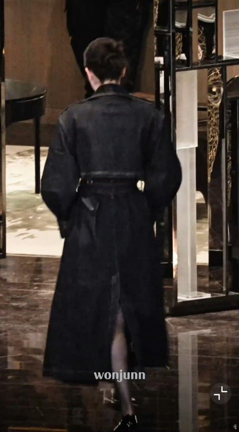 迪丽热巴卫蓝牛仔大衣黑丝造型,太酷拉,牛仔外套配黑丝真的是妈妈级别的啊